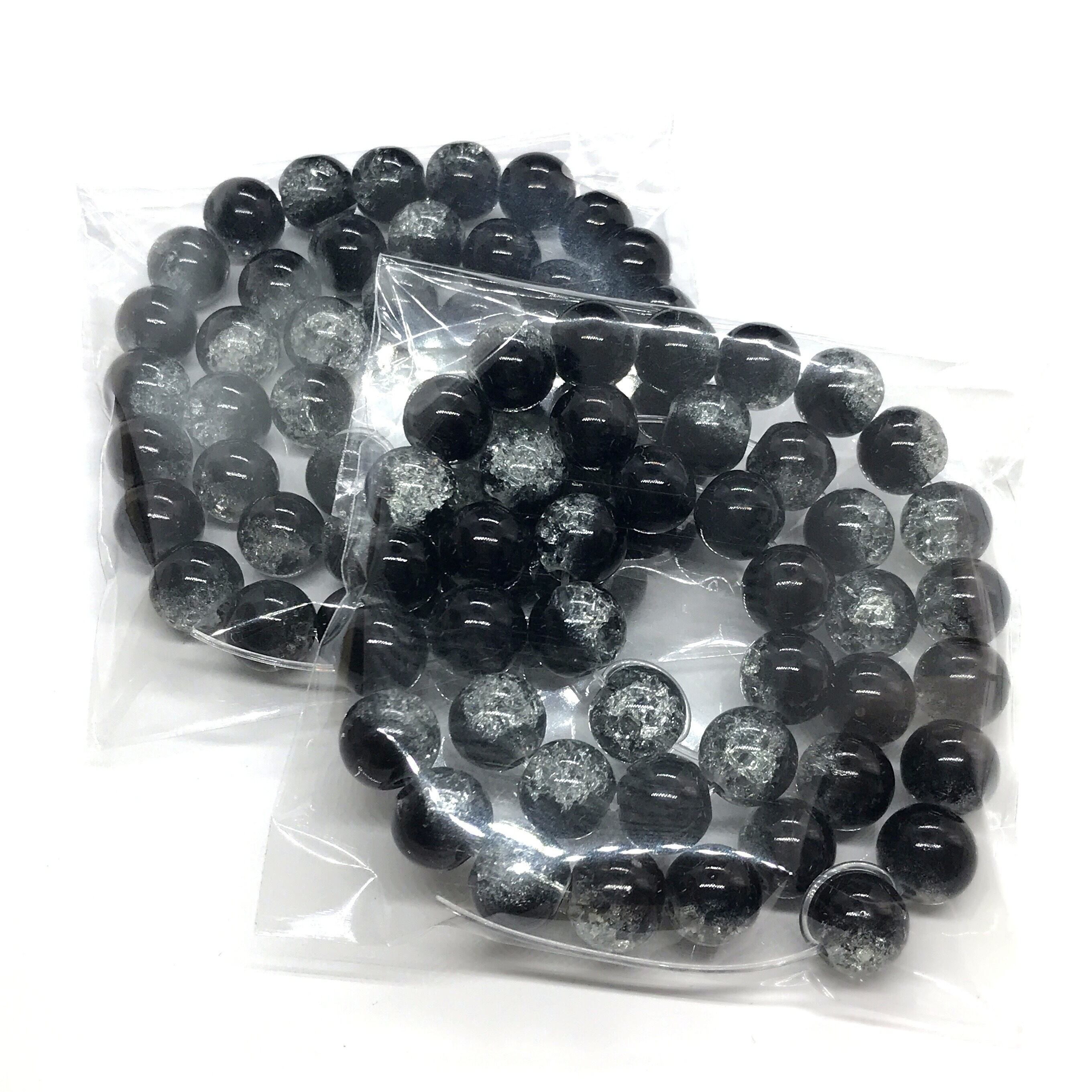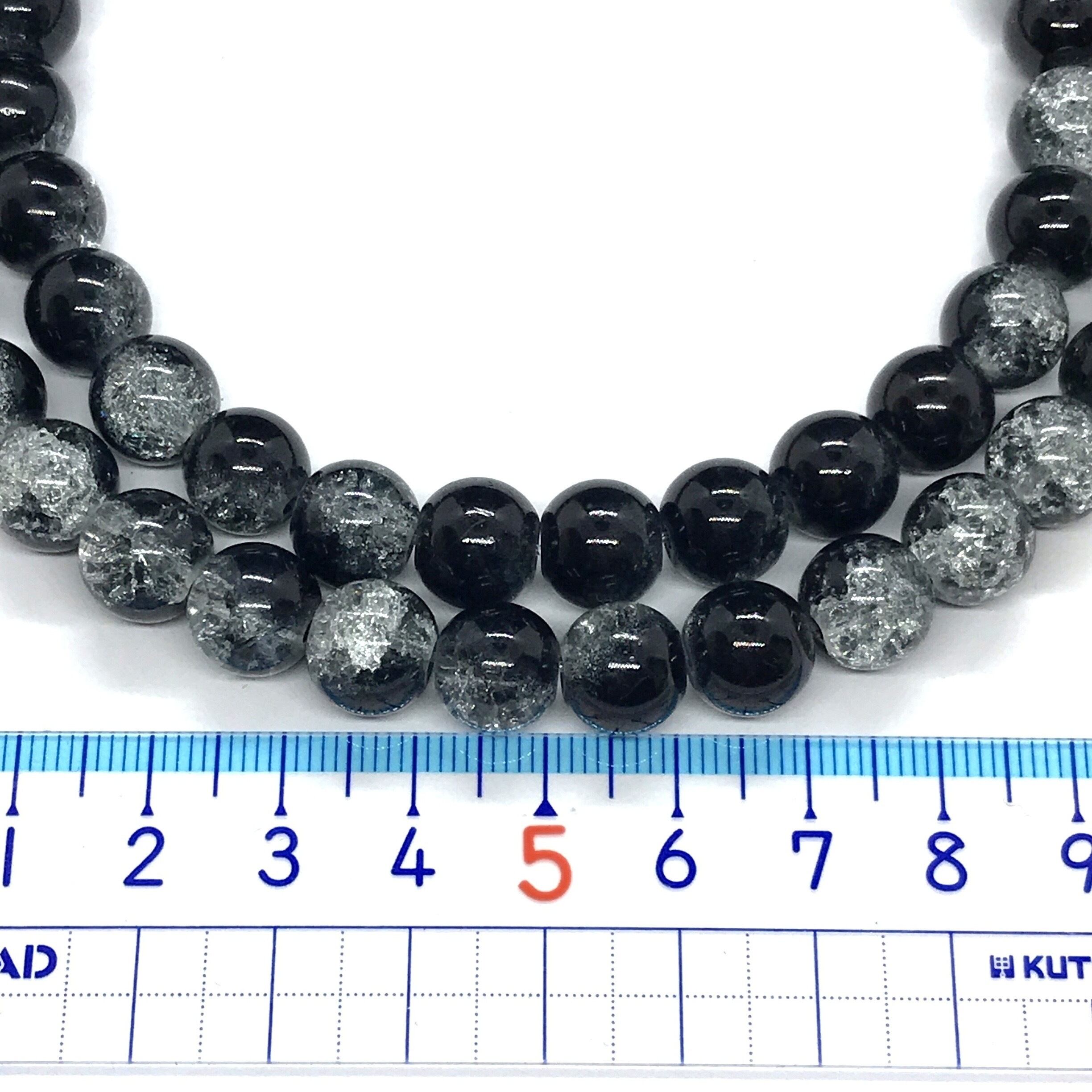 【105】クラック水晶ガラスビーズ★ブラック*ホワイト 10mm/2連set