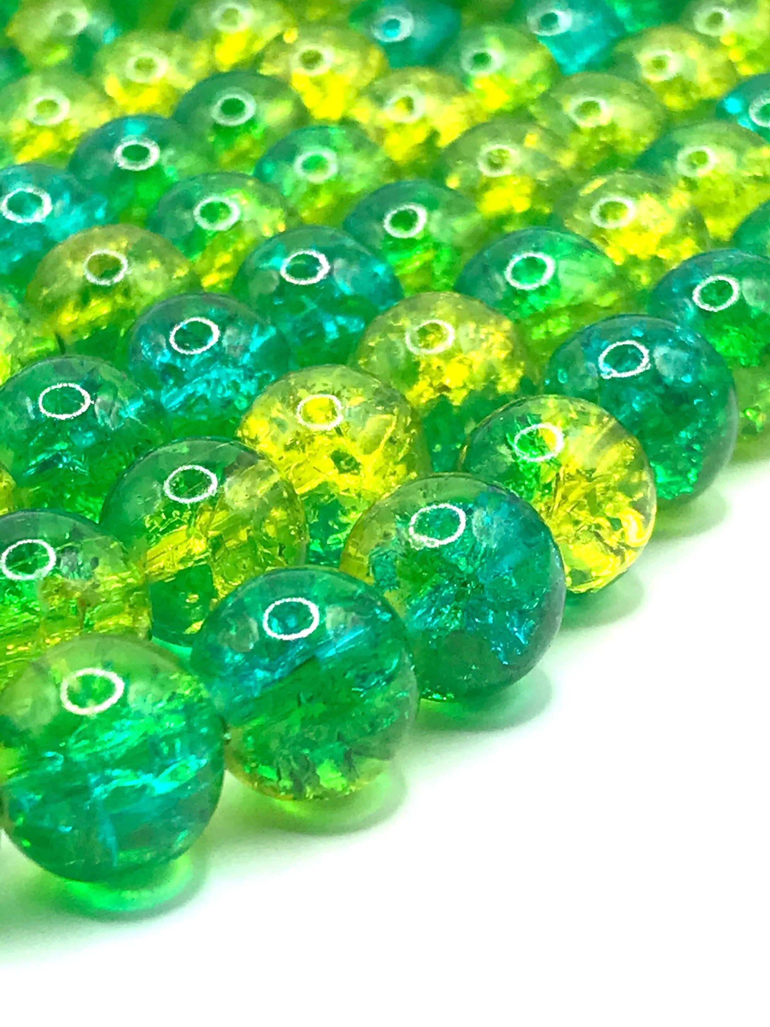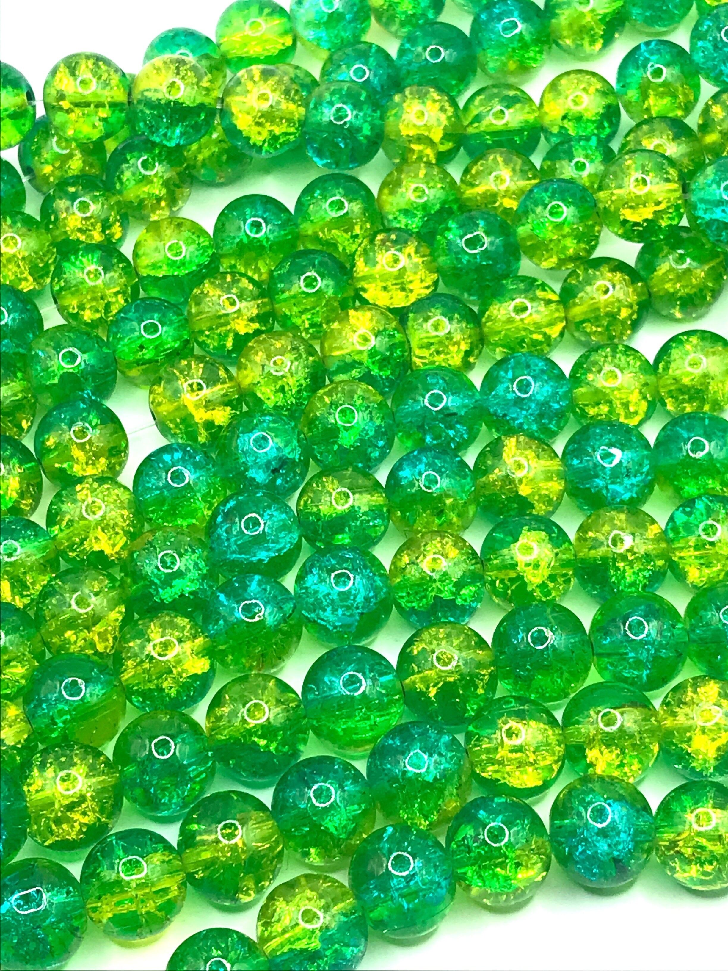 【108】クラック水晶ガラスビーズ★ブルー*イエロー 10mm 2連set