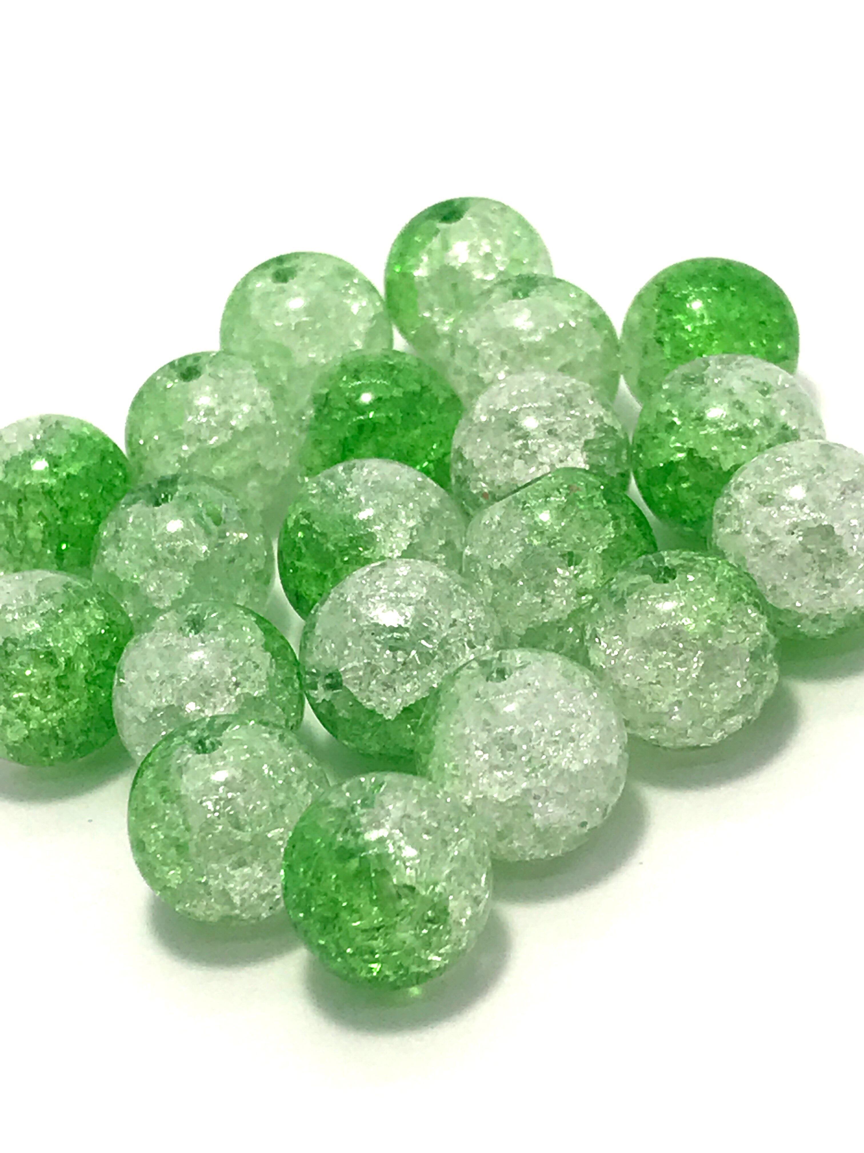 b-109 クラック水晶ガラスビーズ グリーン*ホワイト (20個) 10mm