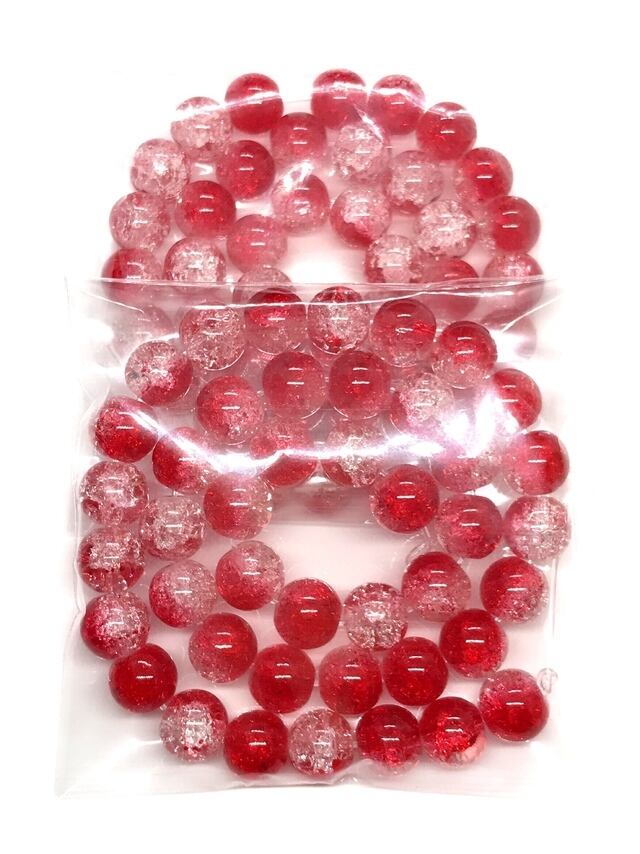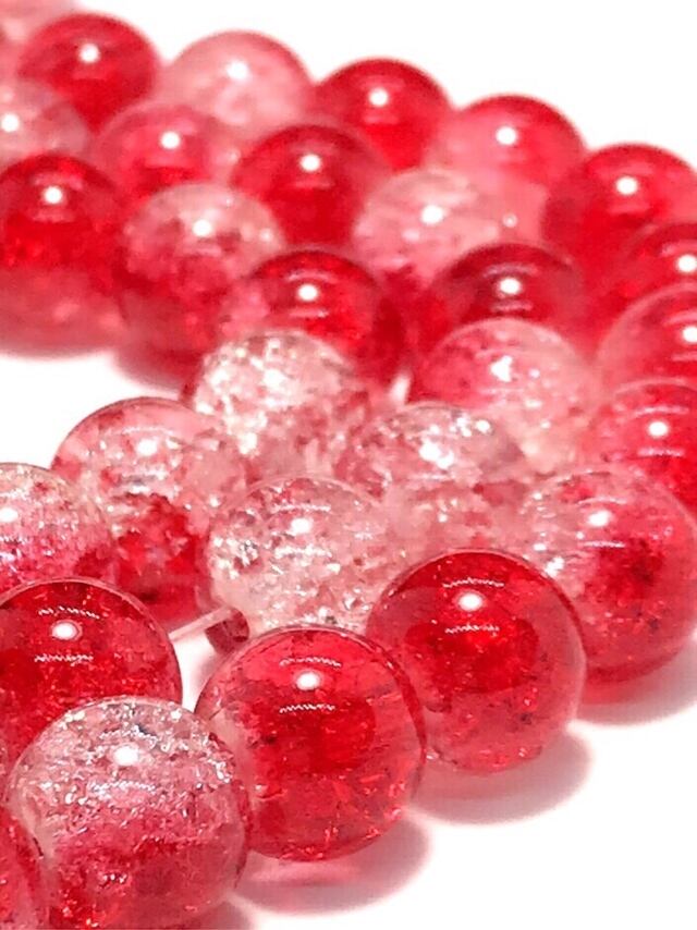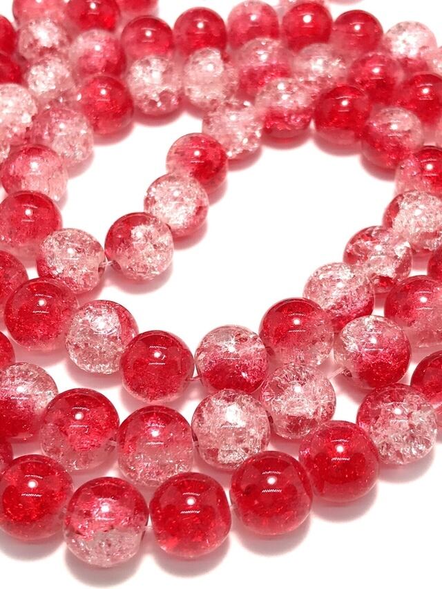 【111】クラック水晶ガラスビーズ★レッド*ホワイト 10mm/2連set