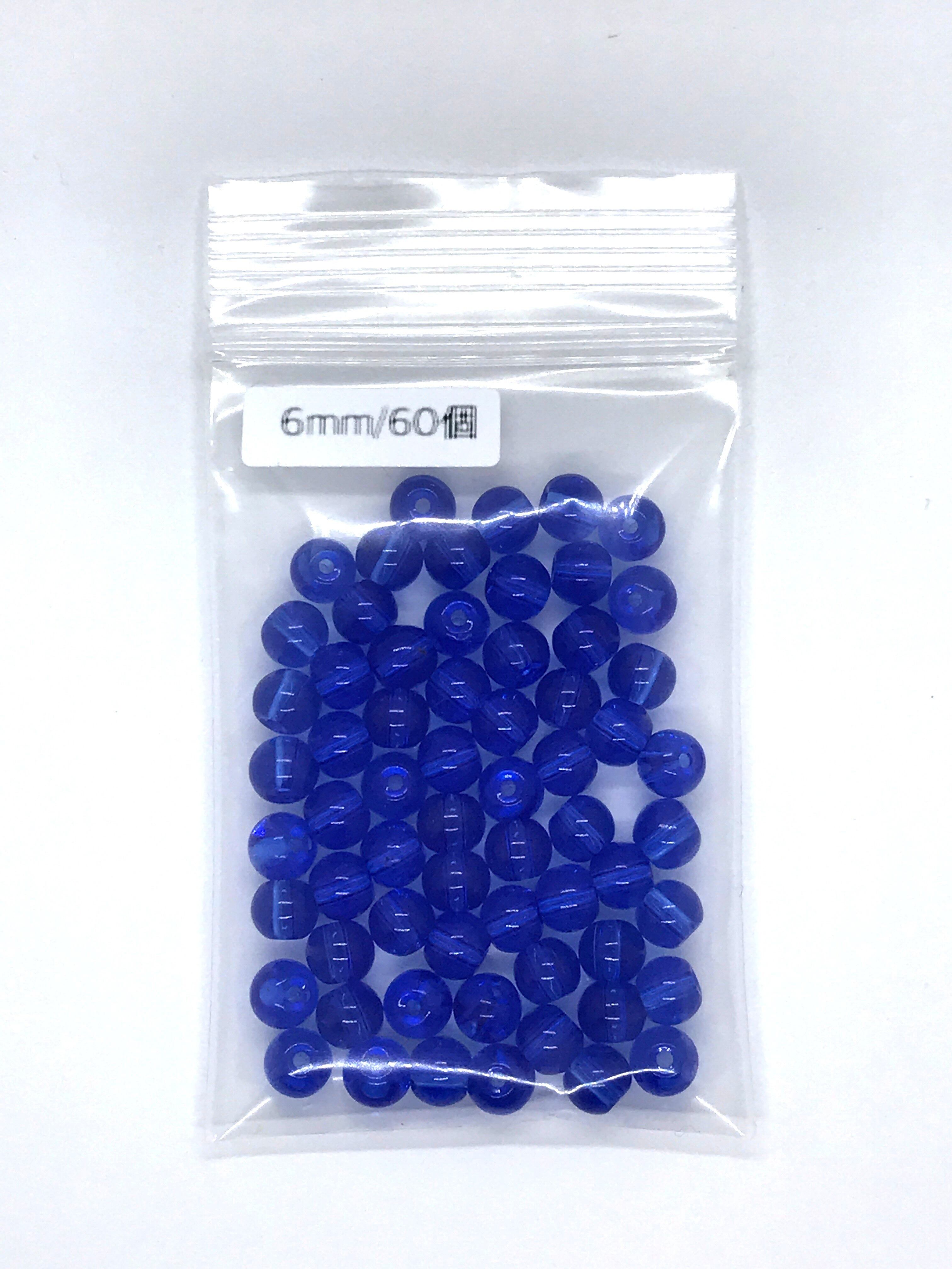 b-132 クリスタルクリアガラスラウンド ブルー (60個) 6mm