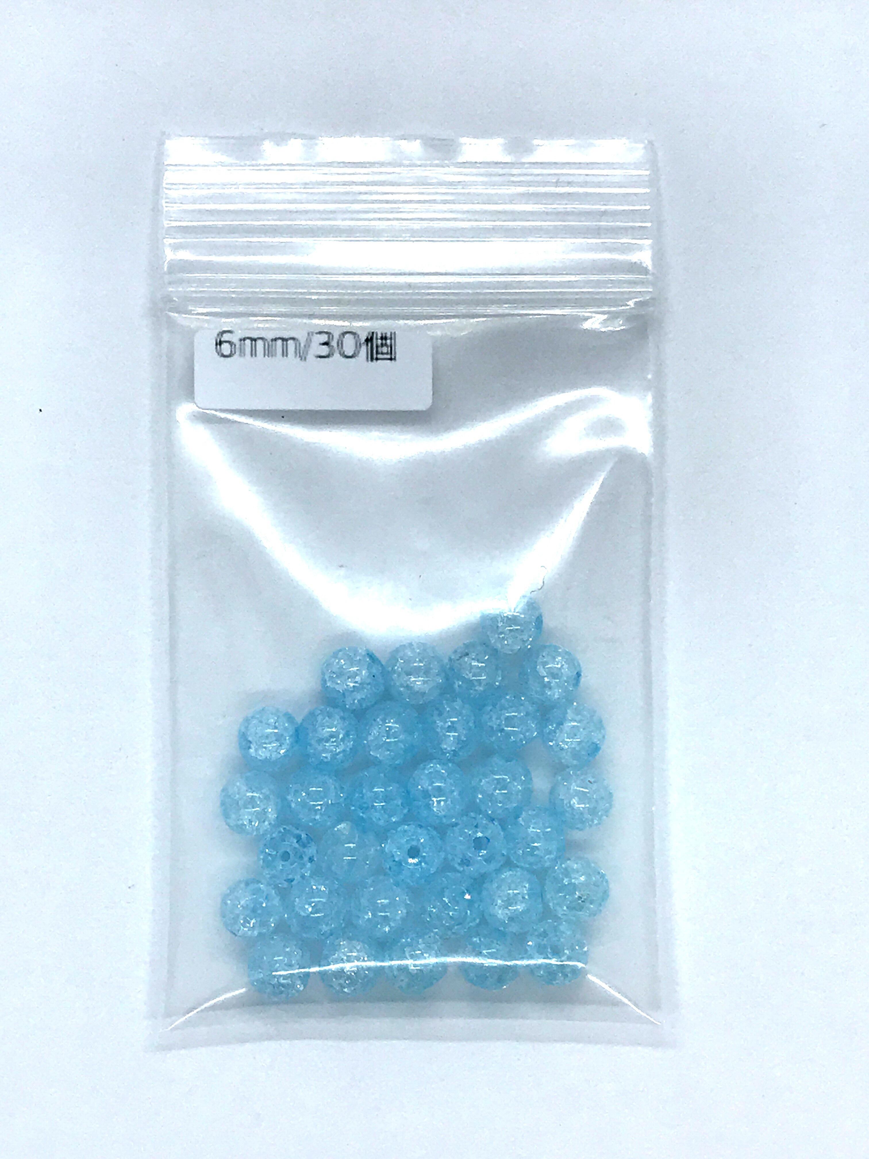 b-140 クラック水晶ガラスビーズ 水色 (30個) 6mm