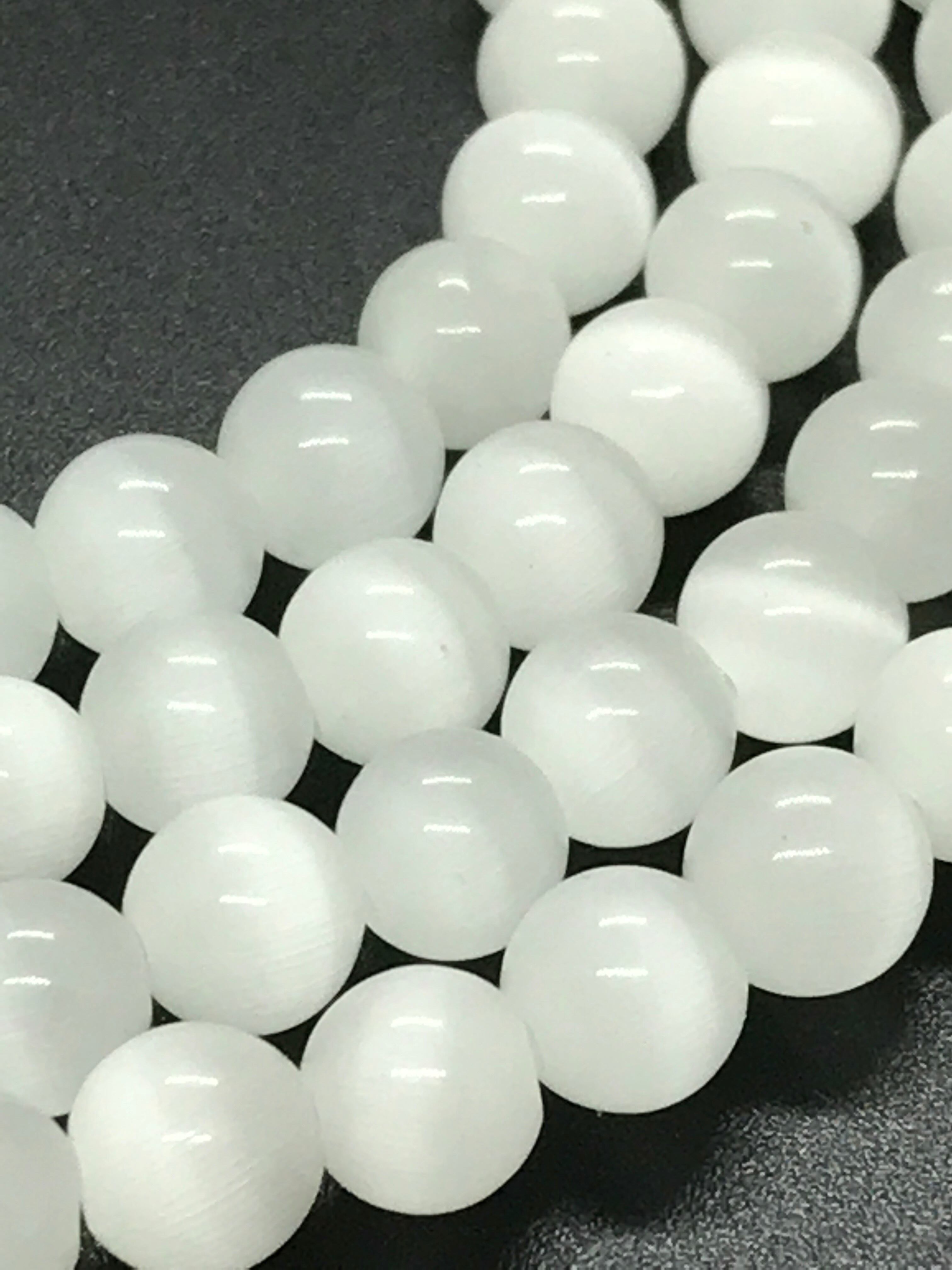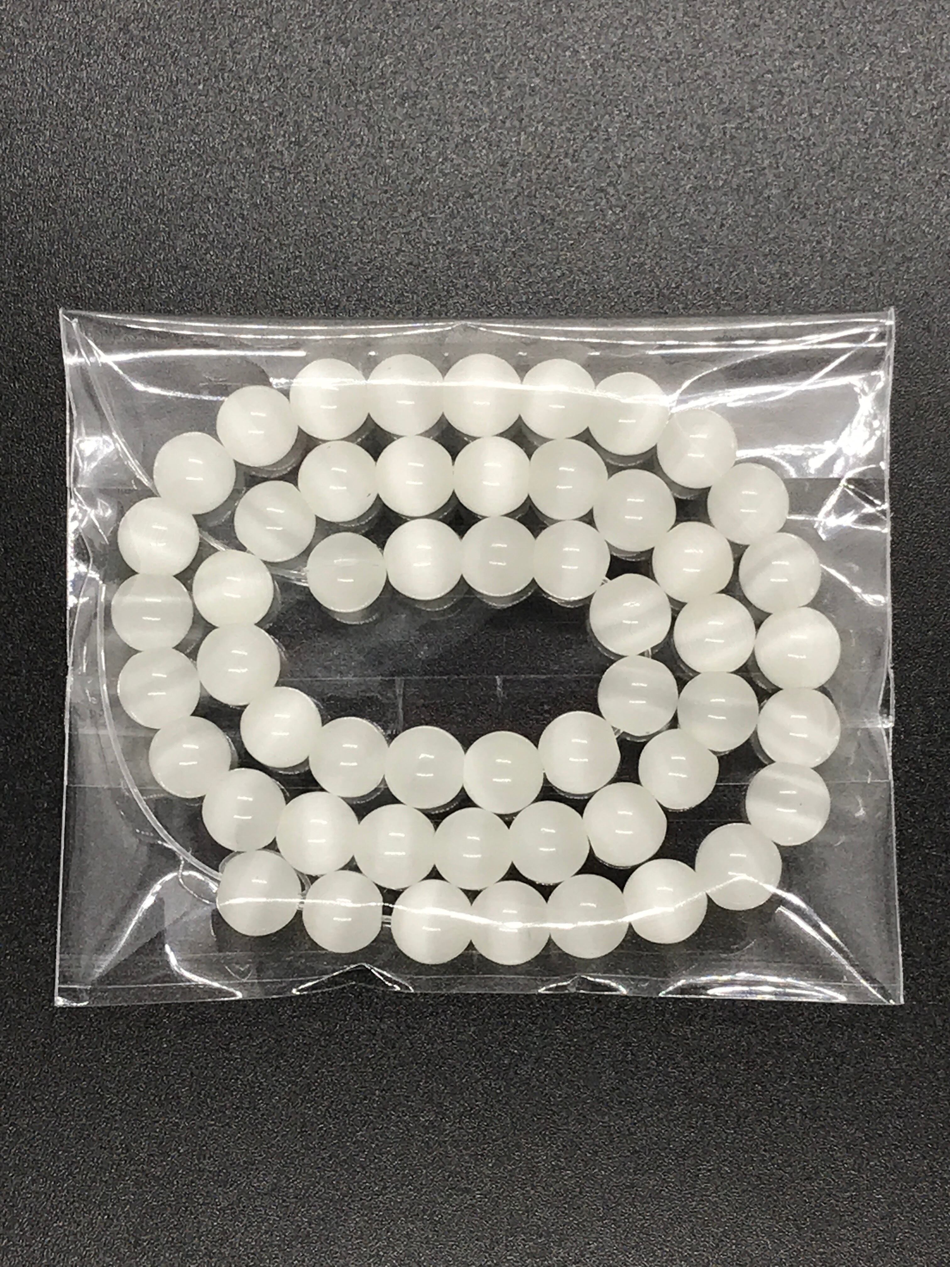 【169】キャッツアイビーズストランド ラウンド★ホワイト 6mm/1連