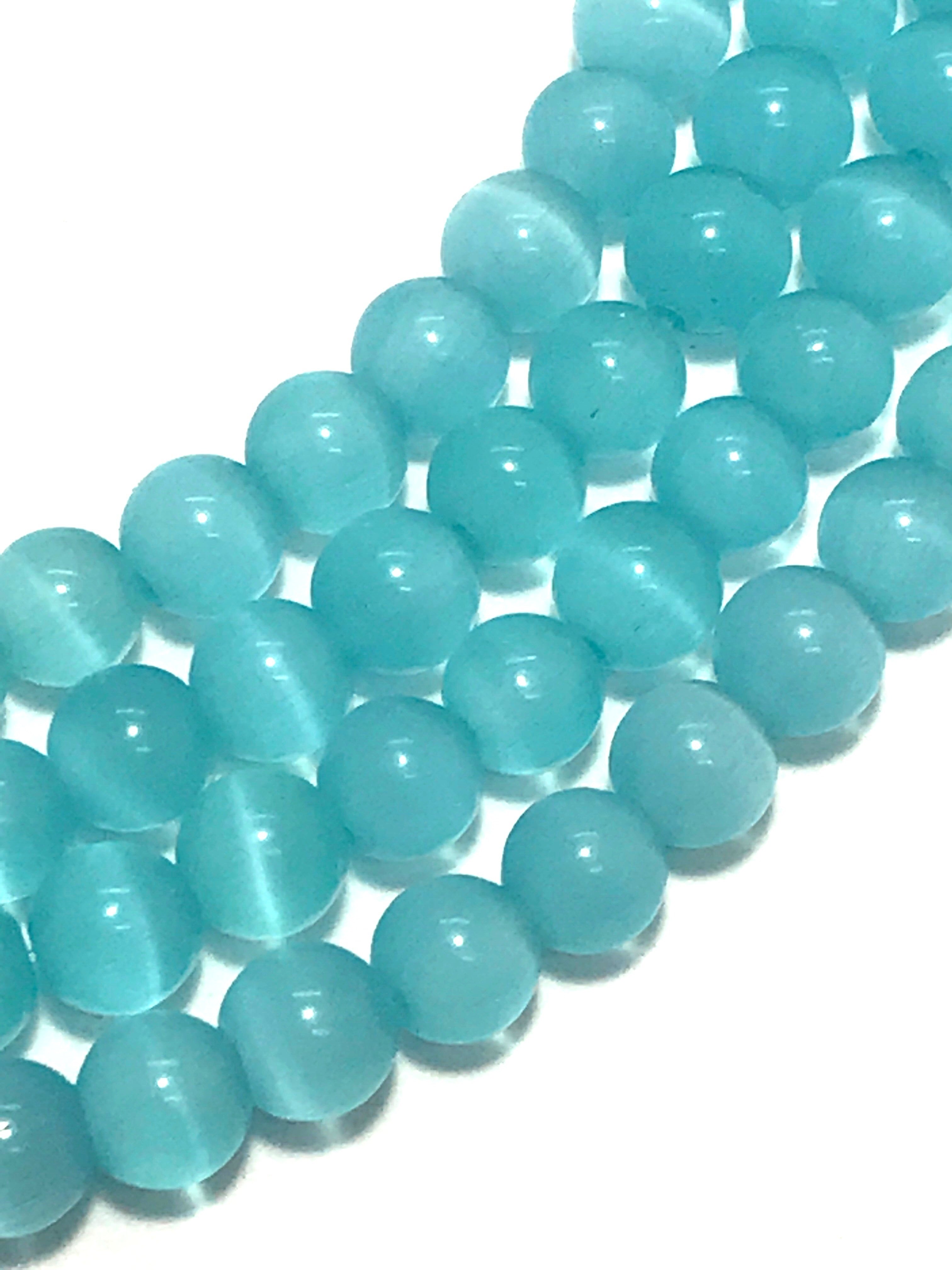 【170】キャッツアイビーズストランド ラウンド★水色 6mm/1連