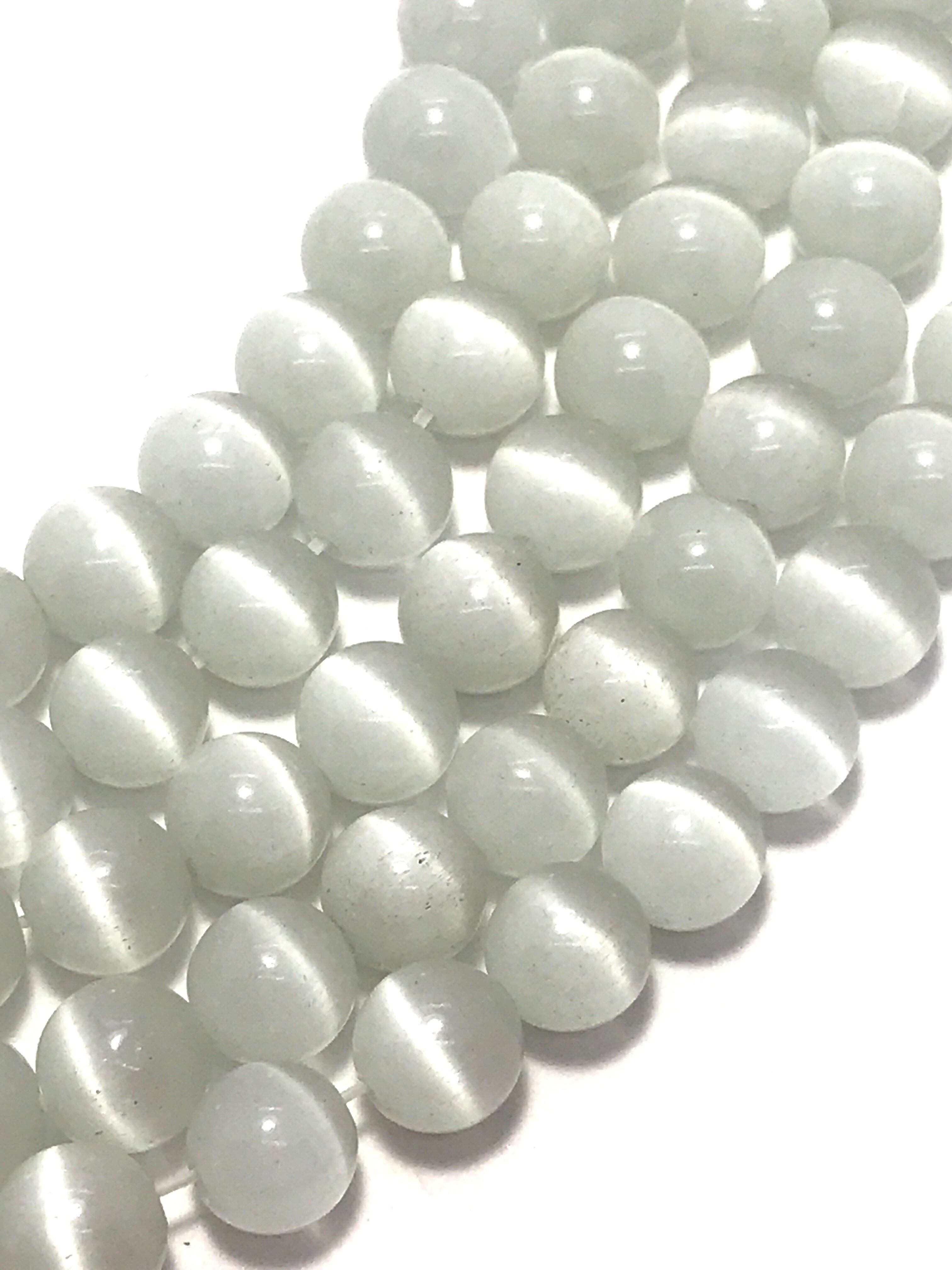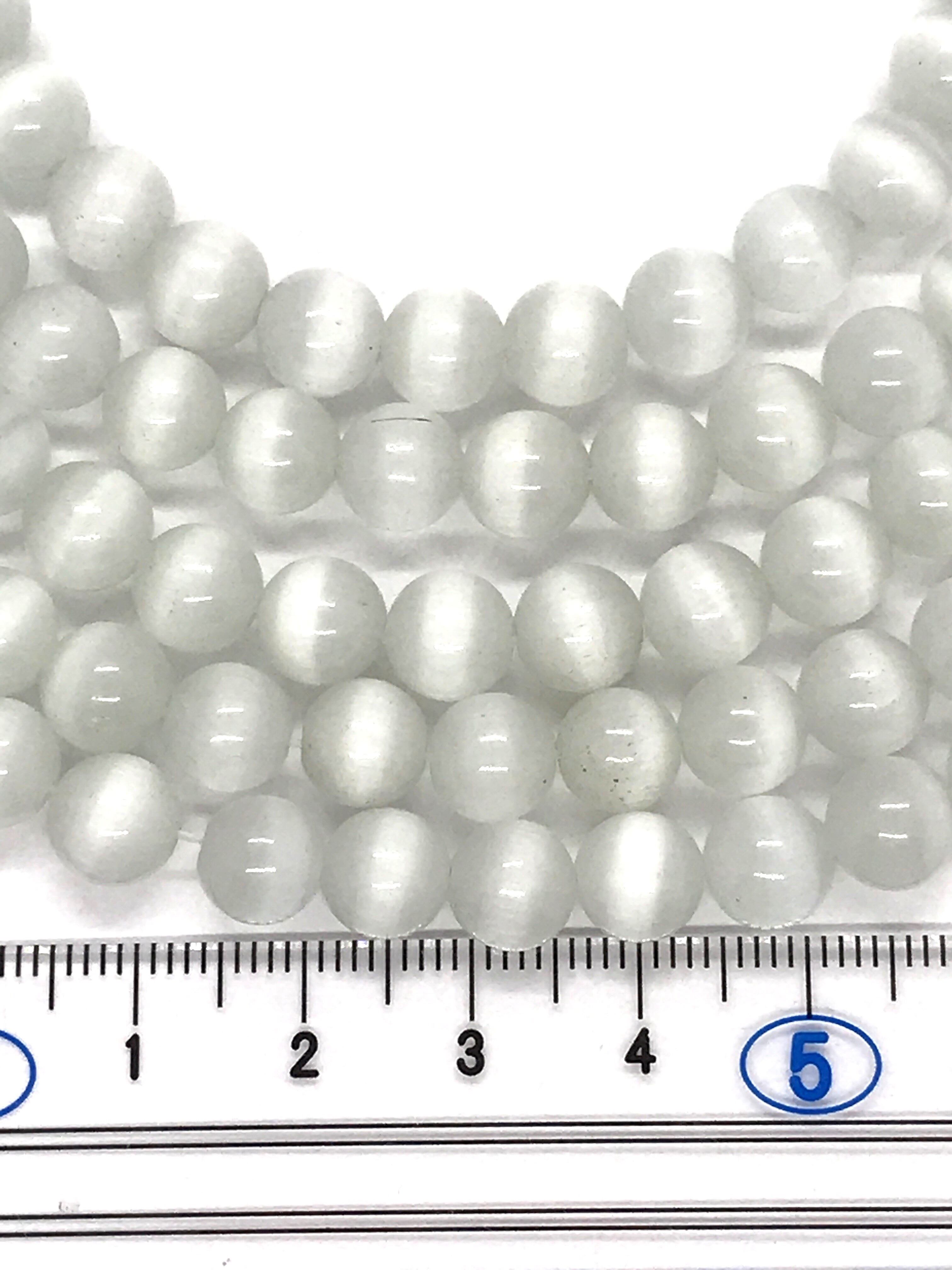 【172】キャッツアイビーズストランド ラウンド★ホワイト 8mm/1連