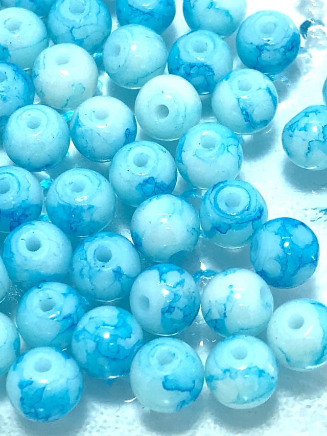 【240】ガラスビーズストランド ラウンド(染め)★ライトスカイブルー 6mm(65個)