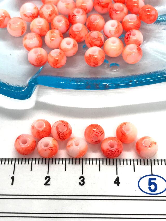 【241】ガラスビーズストランド ラウンド(染め)★オレンジ 6mm(65個)