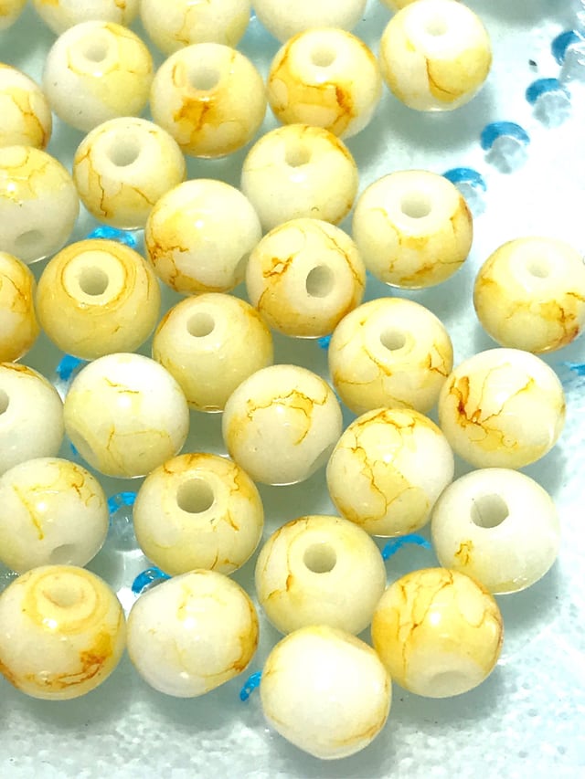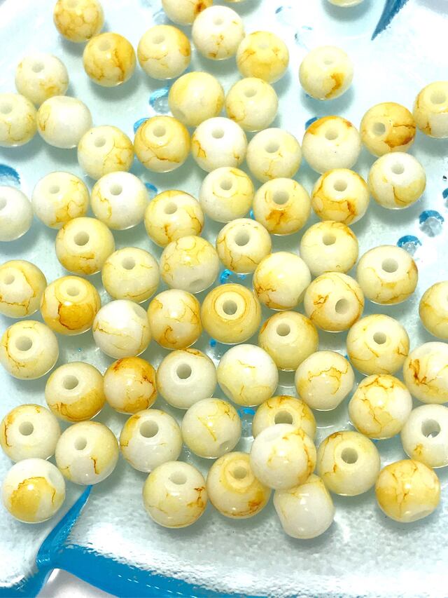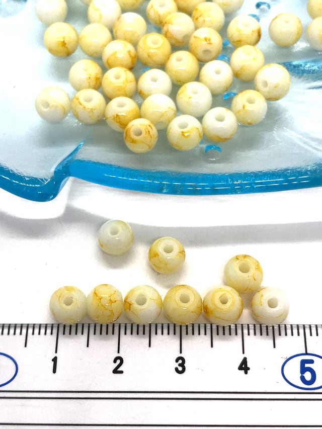 【242】ガラスビーズストランド ラウンド(染め)★イエロー 6mm(65個)