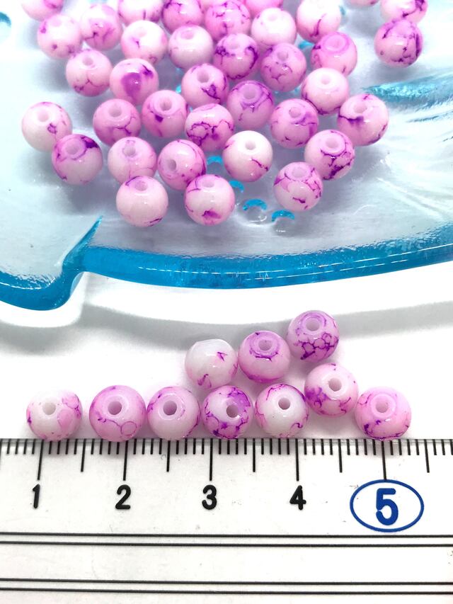 【244】ガラスビーズストランド ラウンド(染め)★欄 6mm(65個)