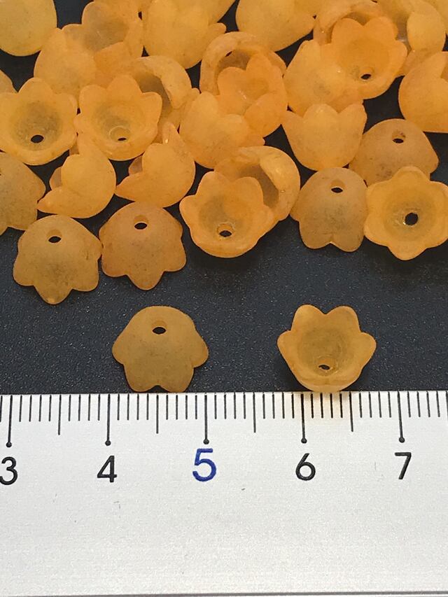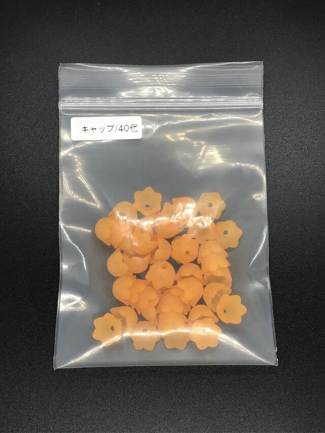 【247】花のアクリルビーズキャップ (ツヤ無し)★オレンジ 40個