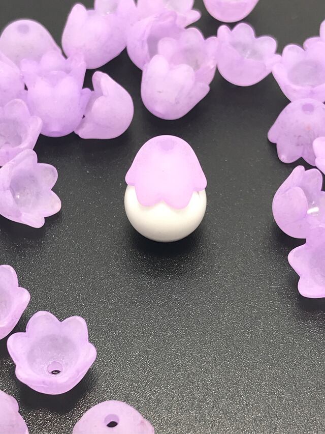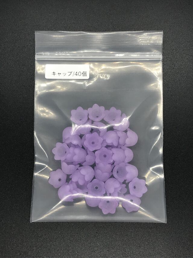 【248】花のアクリルビーズキャップ(ツヤ無し)★紫 40個
