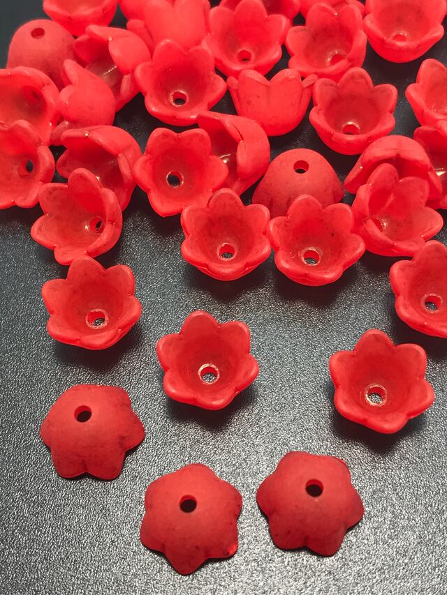 【249】花のアクリルビーズキャップ(ツヤ無し)★レッド 40個