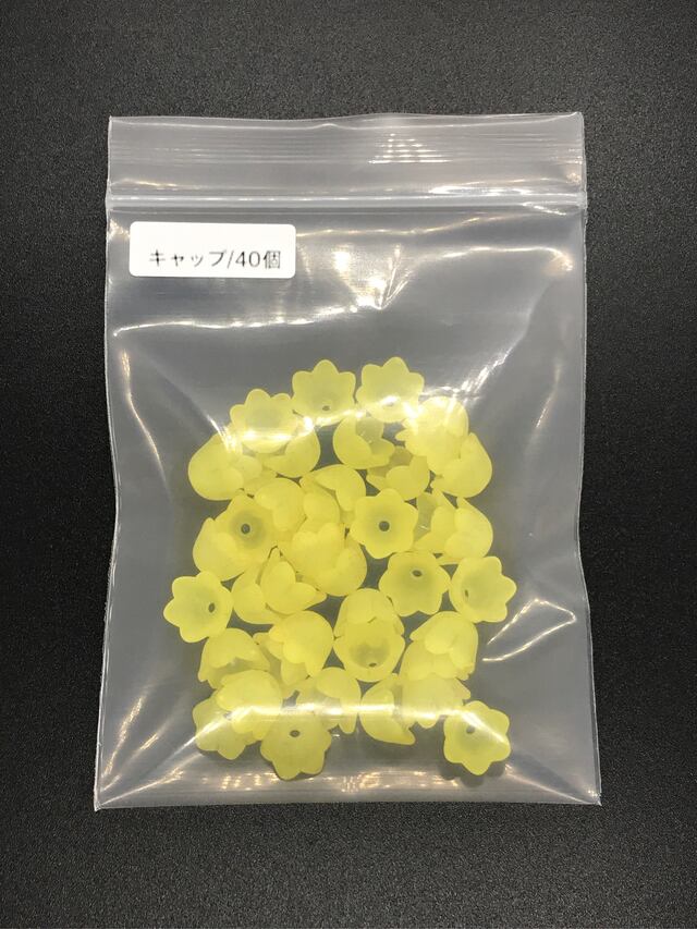 【254】花のアクリルビーズキャップ(ツヤ無し) イエロー 40個
