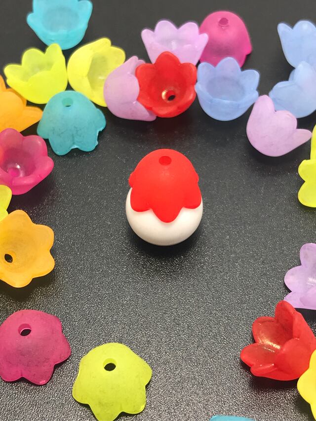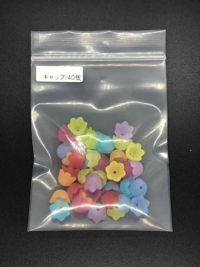 【255】花のアクリルビーズ(ツヤ無し) 混合色 8色/各5個 40個