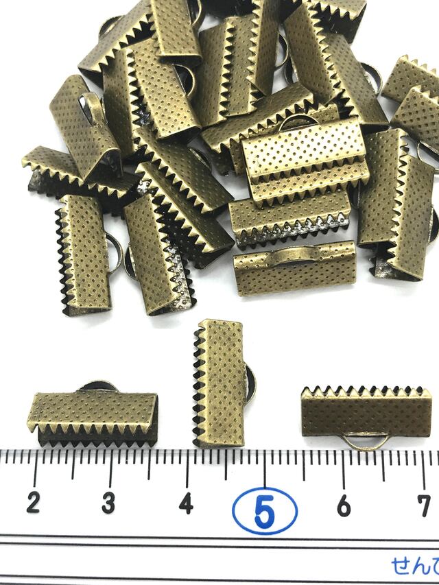 【322】ワニ口 リボンエンド 金具 留め具★アンティークブロンズ 16mm/30個