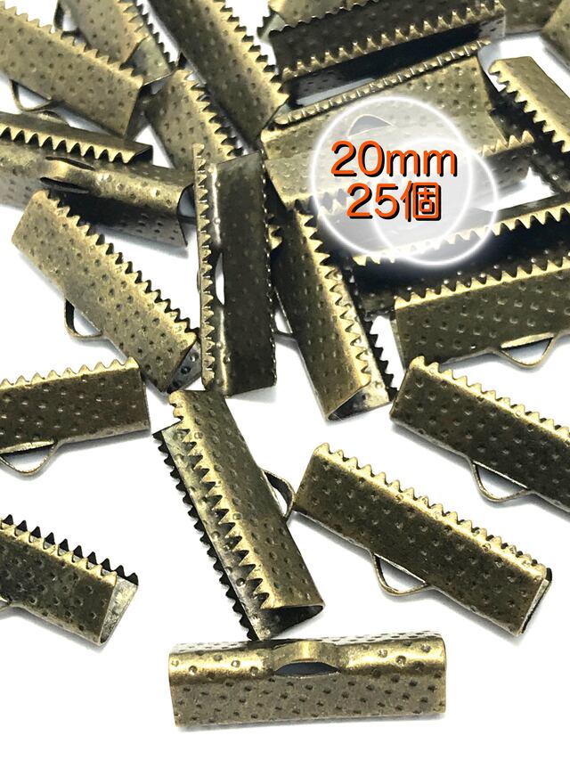 【327】ワニ口 リボンエンド 金具 留め具★アンティークブロンズ 20mm/25個