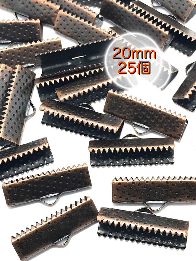 【328】ワニ口 リボンエンド 金具 留め具★赤銅色 20mm/25個