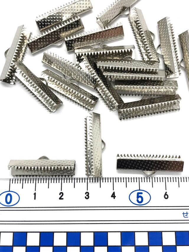 【331】ワニ口 リボンエンド 金具 留め具★プラチナ 25mm/20個