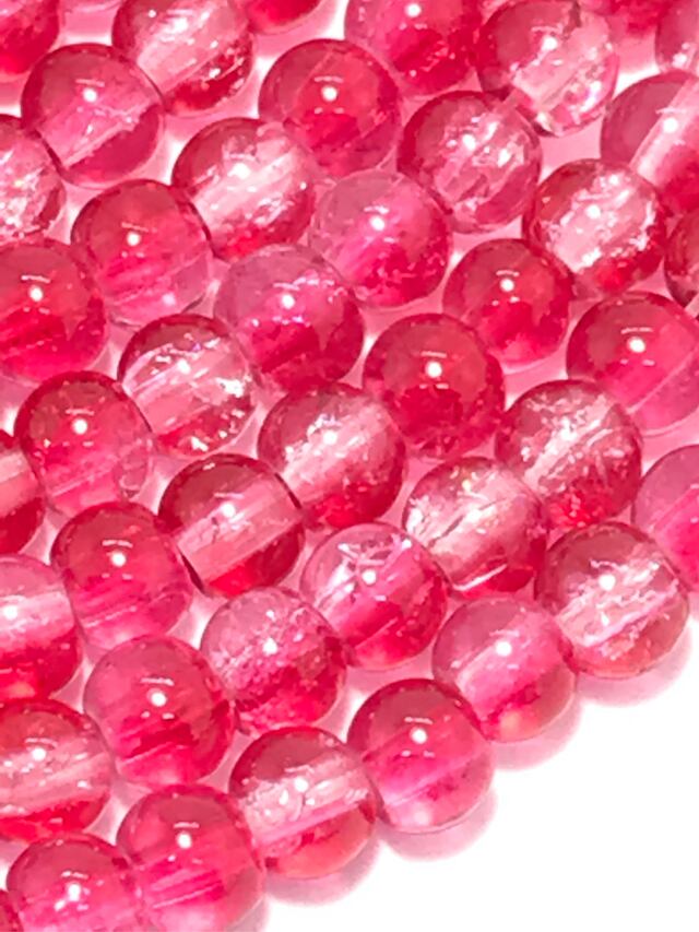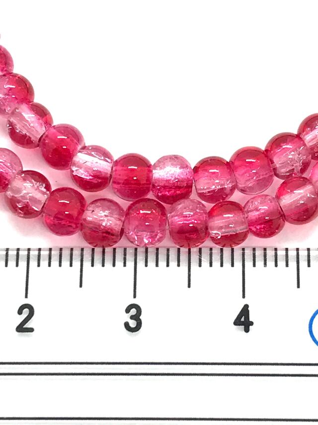 【349】クラック水晶ガラスビーズ★レッド*ホワイト 4mm/1連