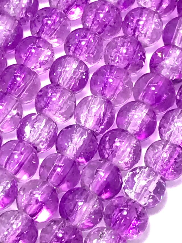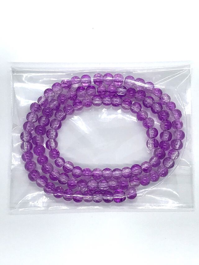 【352】クラック水晶ガラスビーズ★パープル*ホワイト 4mm/1連