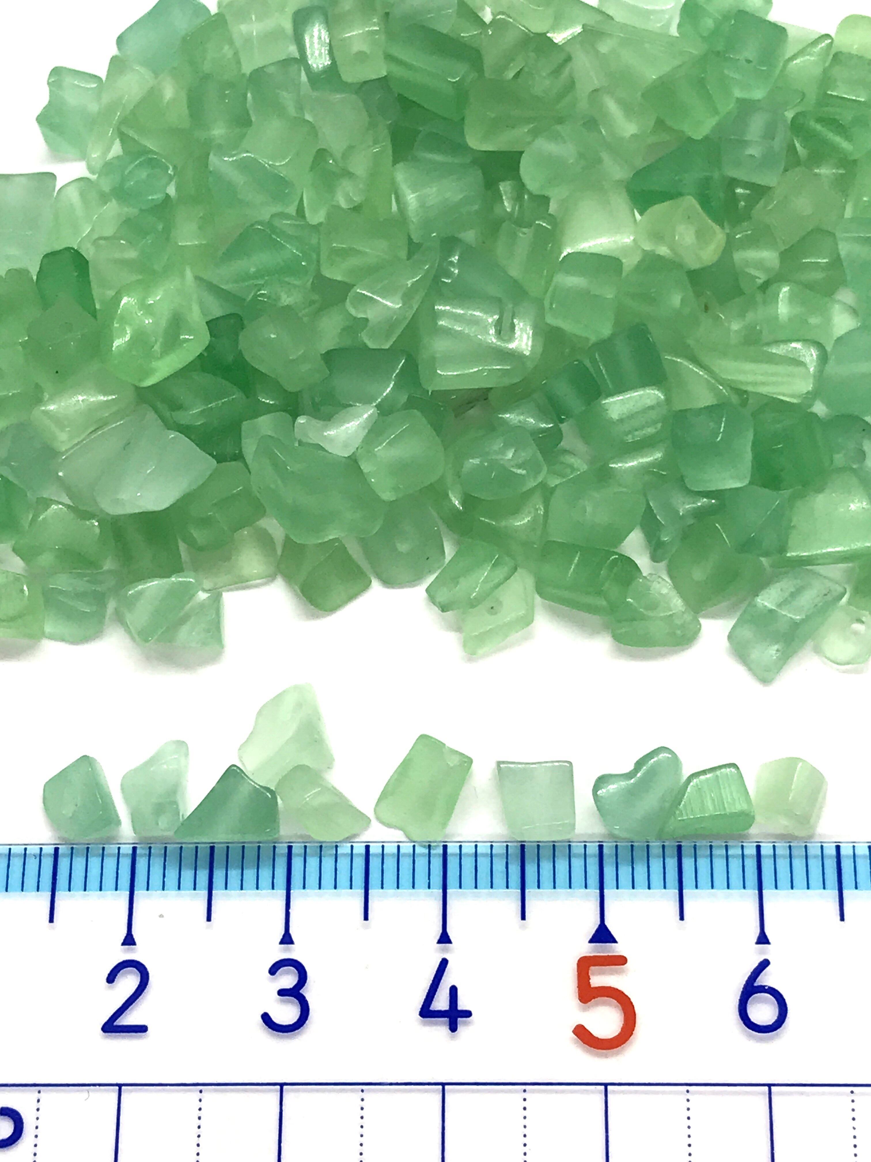【443】キャッツアイビーズストランド/ナゲット★ライトグリーン 約190個