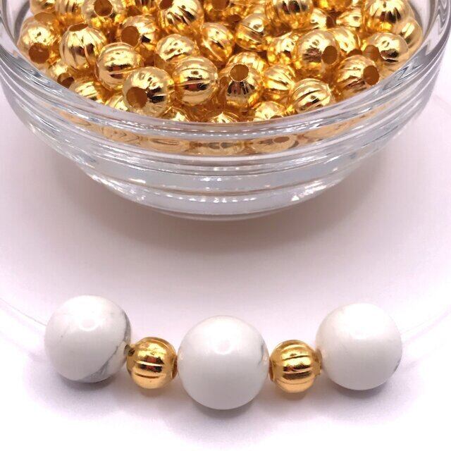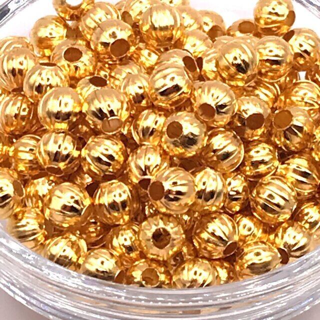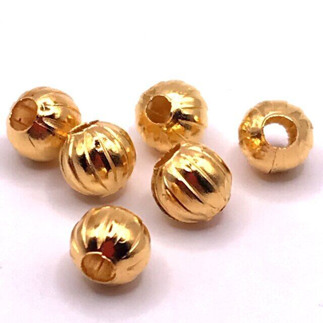 【493】鉄コルゲートビーズラウンド★ゴールド 6mm/70個
