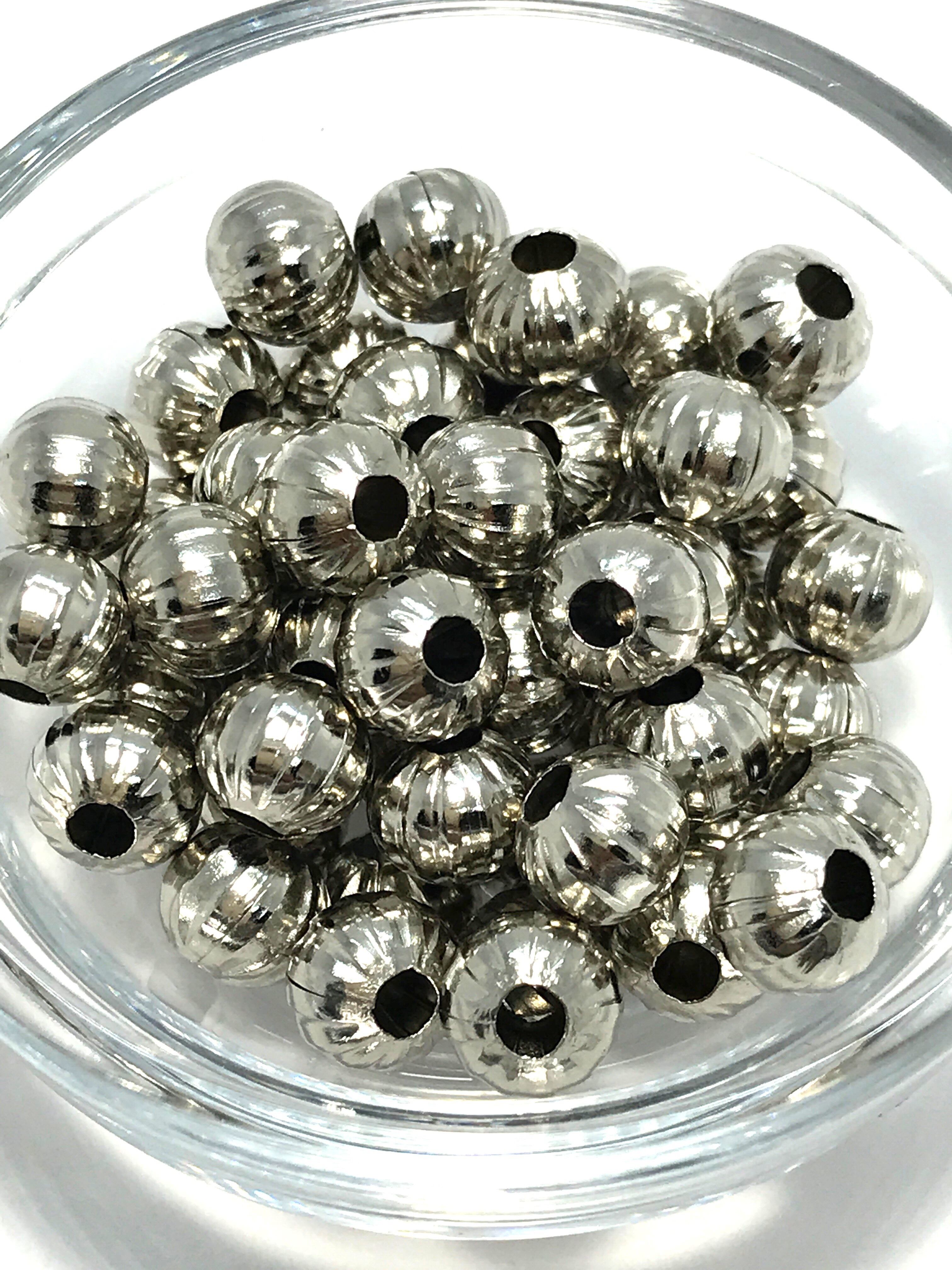 【500】鉄コルゲートビーズラウンド★プラチナ 8mm/50個