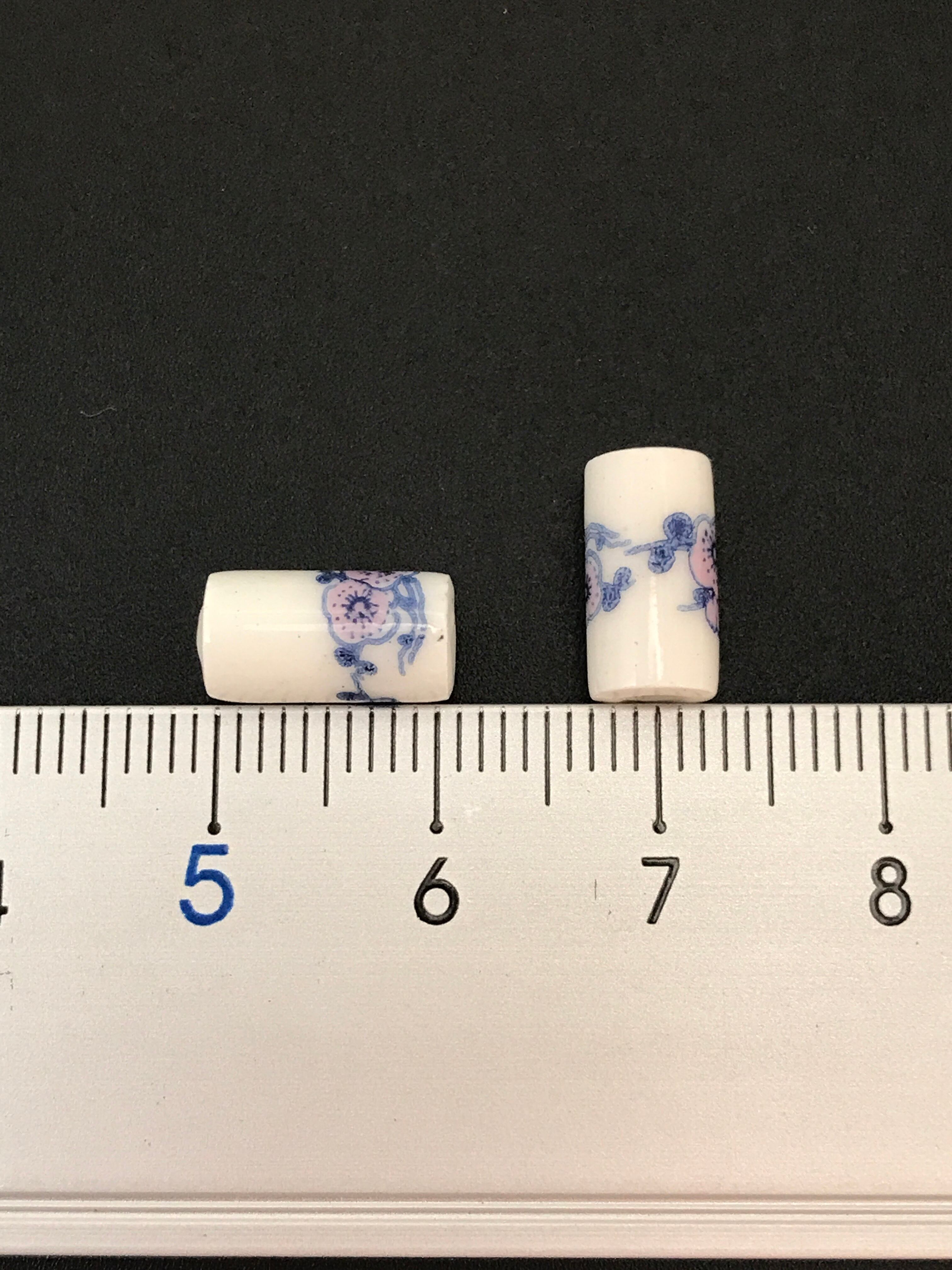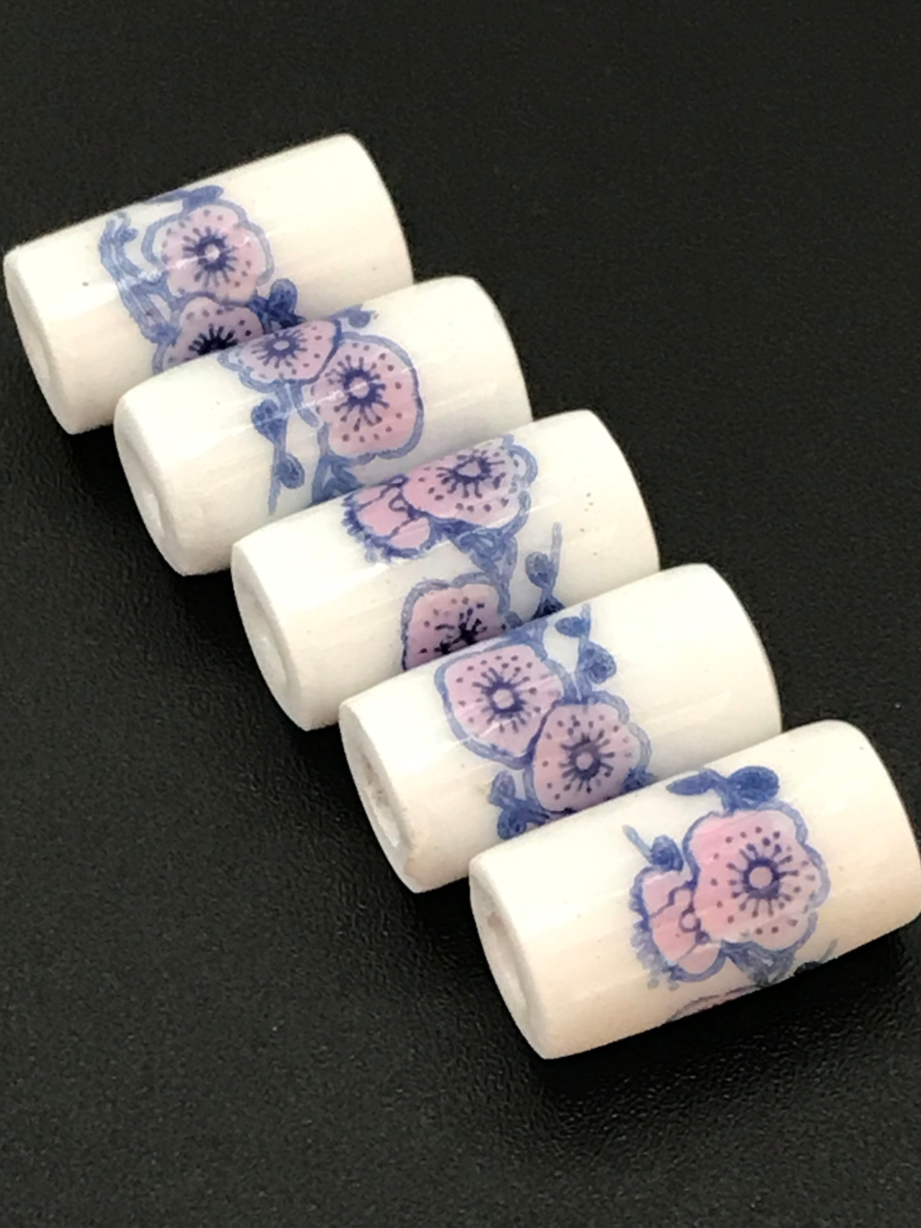 【521】花模様磁器ビーズストランド★ブルー 5個