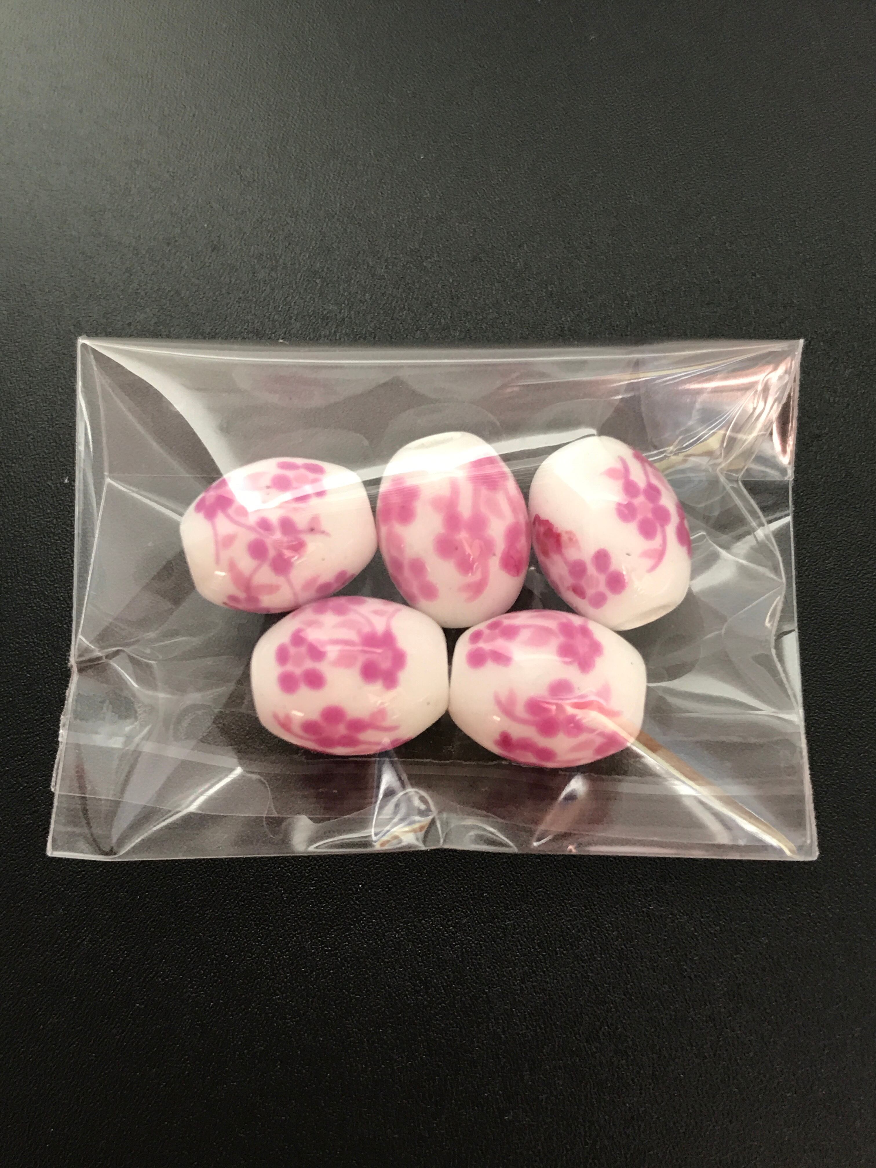 【532】花柄の磁器バレルビーズストランド★パープル 10mm/5個
