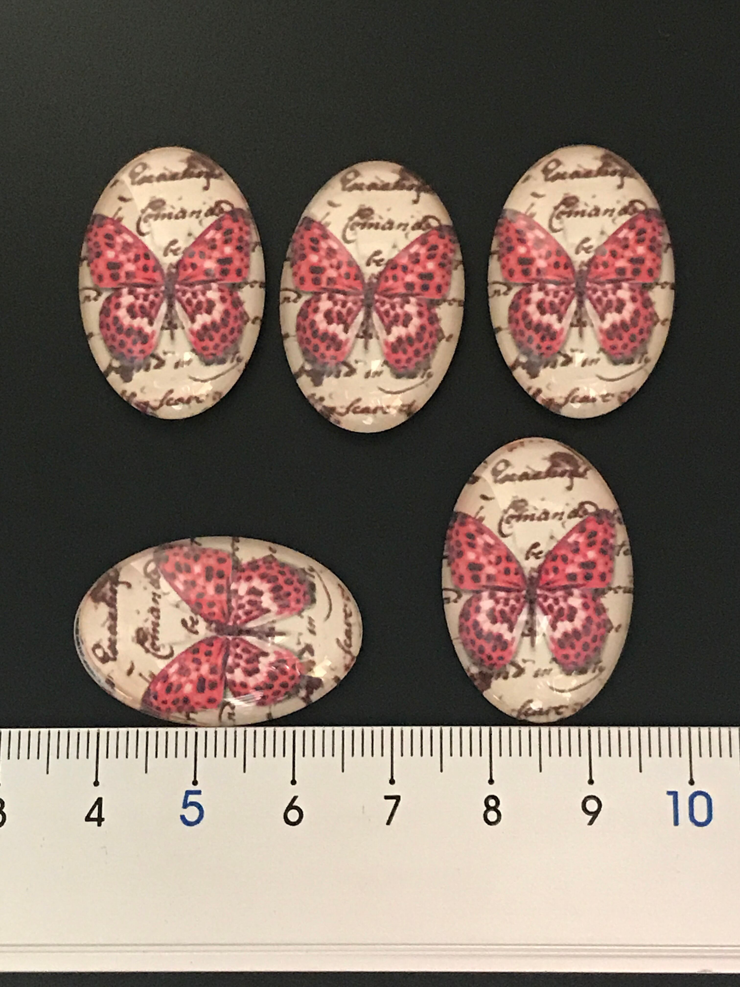 【537】蝶のガラスカボション/半円 ドーム★30mm/5個