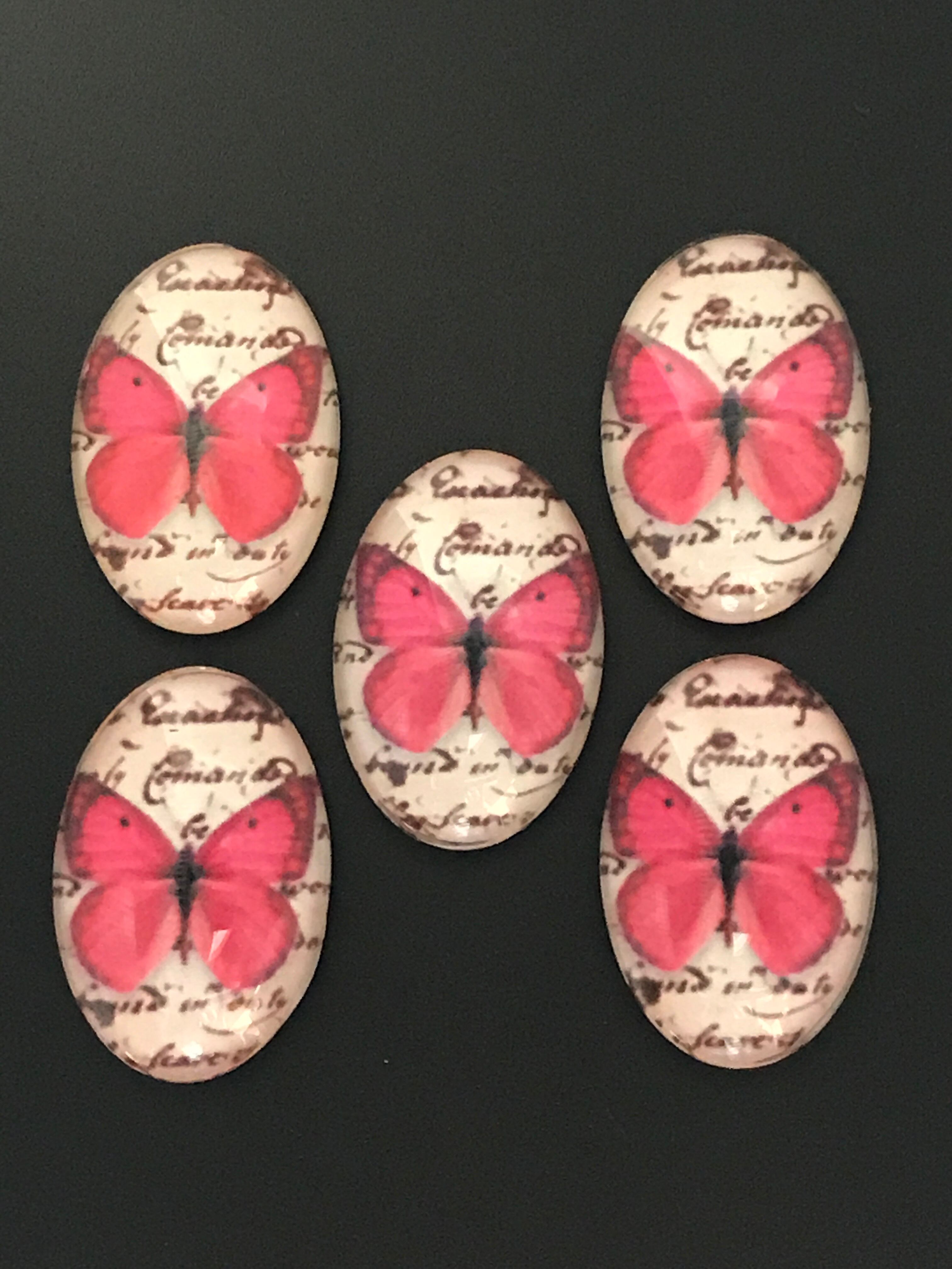 【539】蝶のガラスカボション/半円 ドーム★30mm/5個