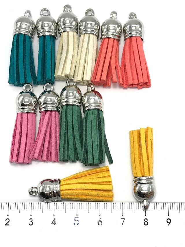 【C】スエード調タッセルパーツ プラスチックコードエンド付★混合色/各2個 計12個