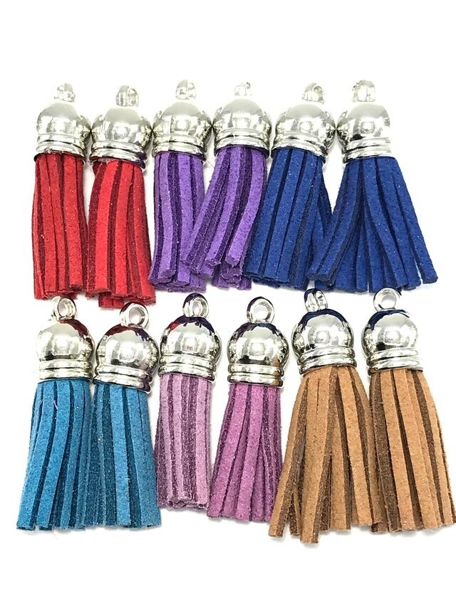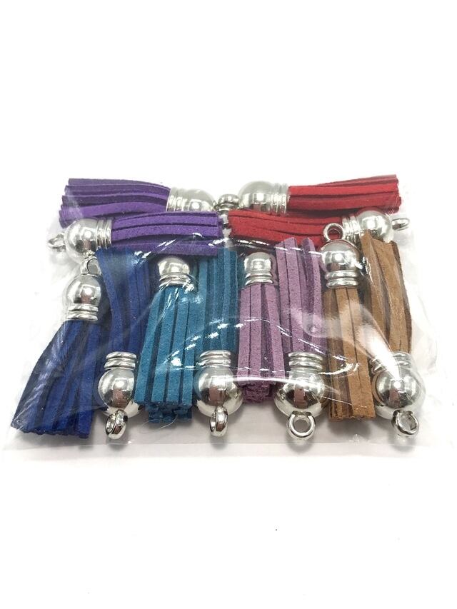【E】スエード調タッセルパーツ プラスチックコードエンド付★混合色/各2個 計12個