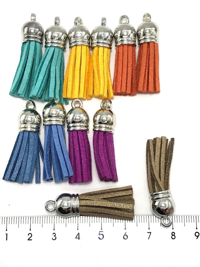 【F】スエード調タッセルパーツ プラスチックコードエンド付★混合色/各2個 計12個