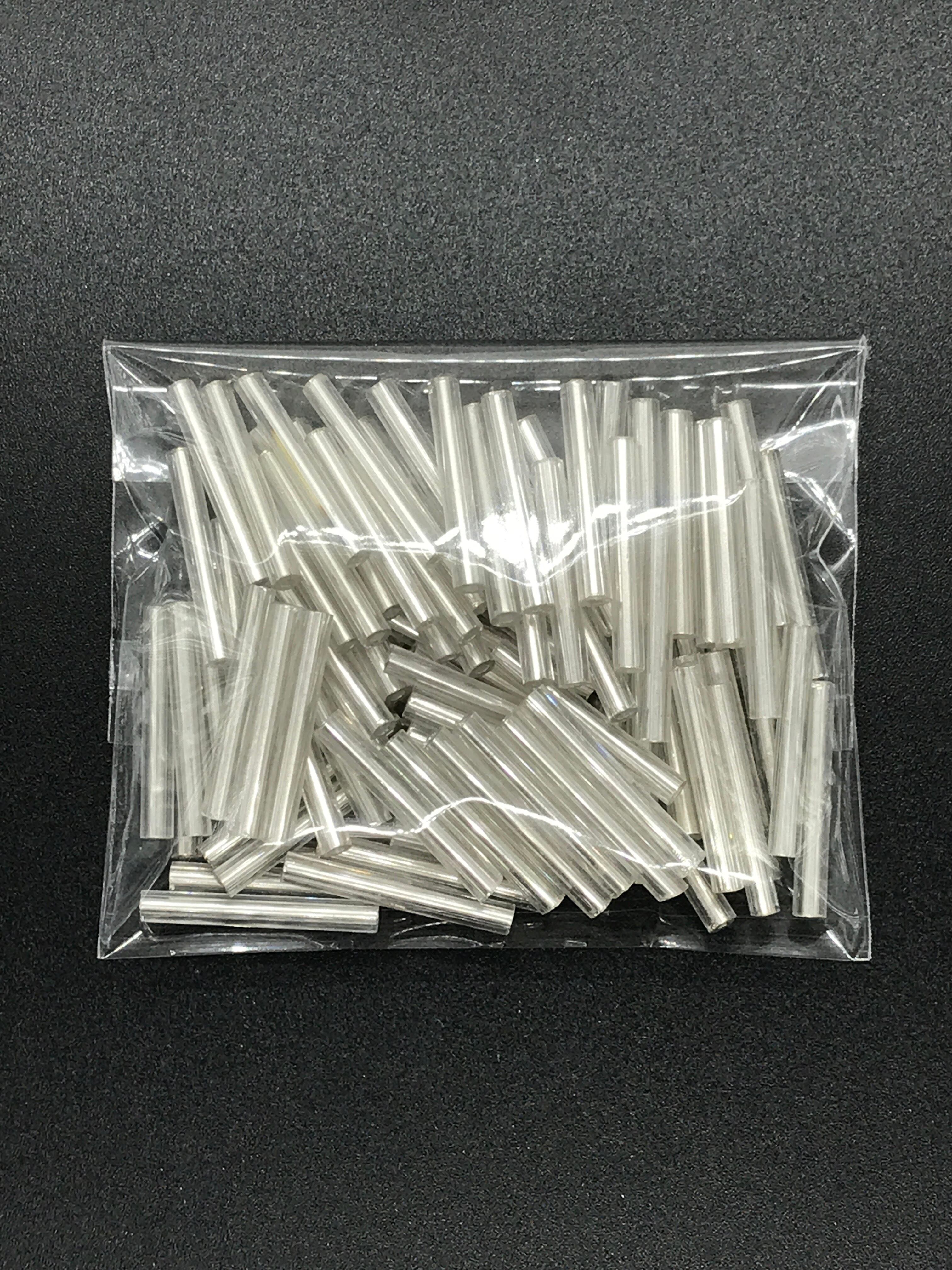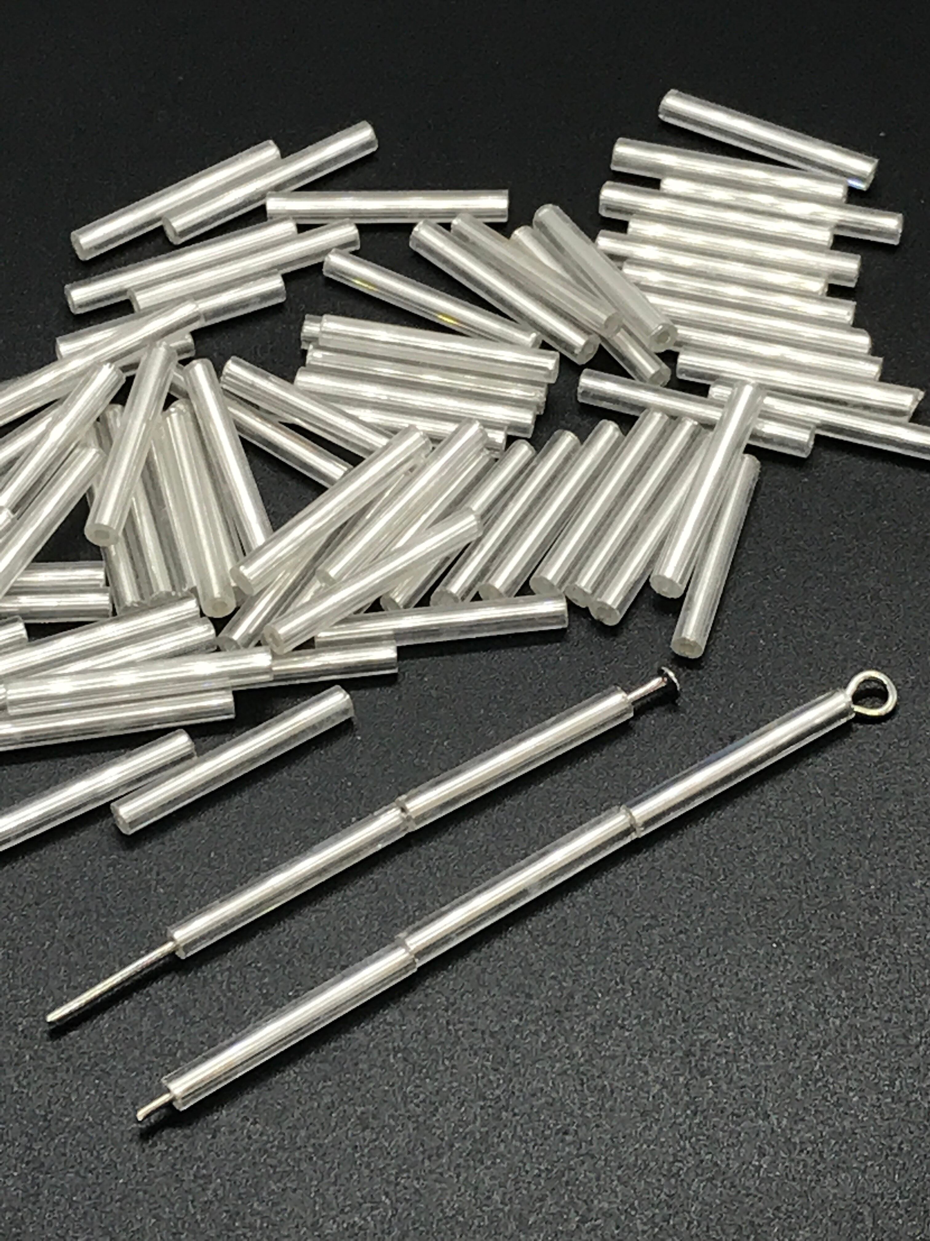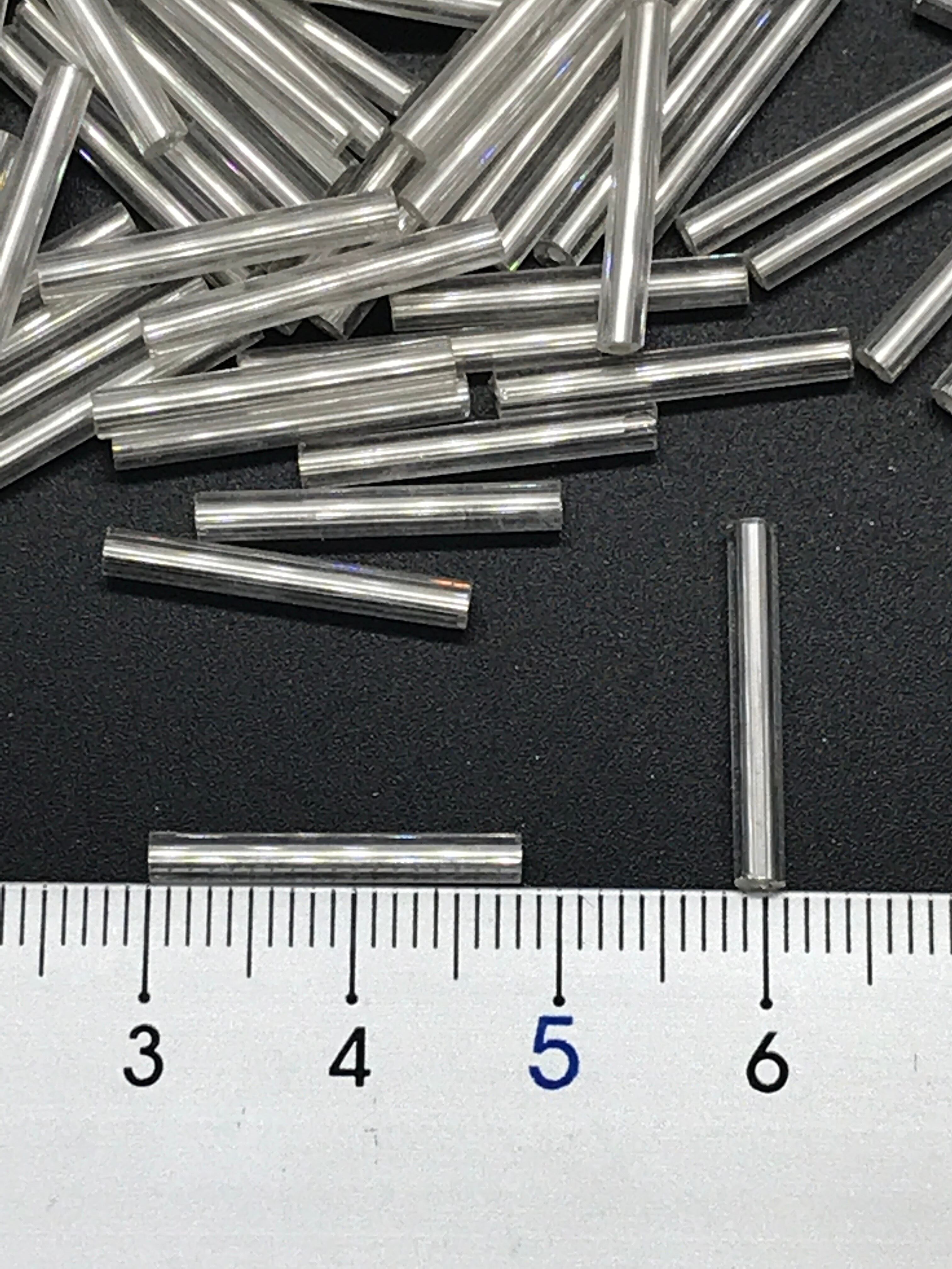 【625】透明のガラスラッパビーズ チューブ★シルバー 18mm/100個