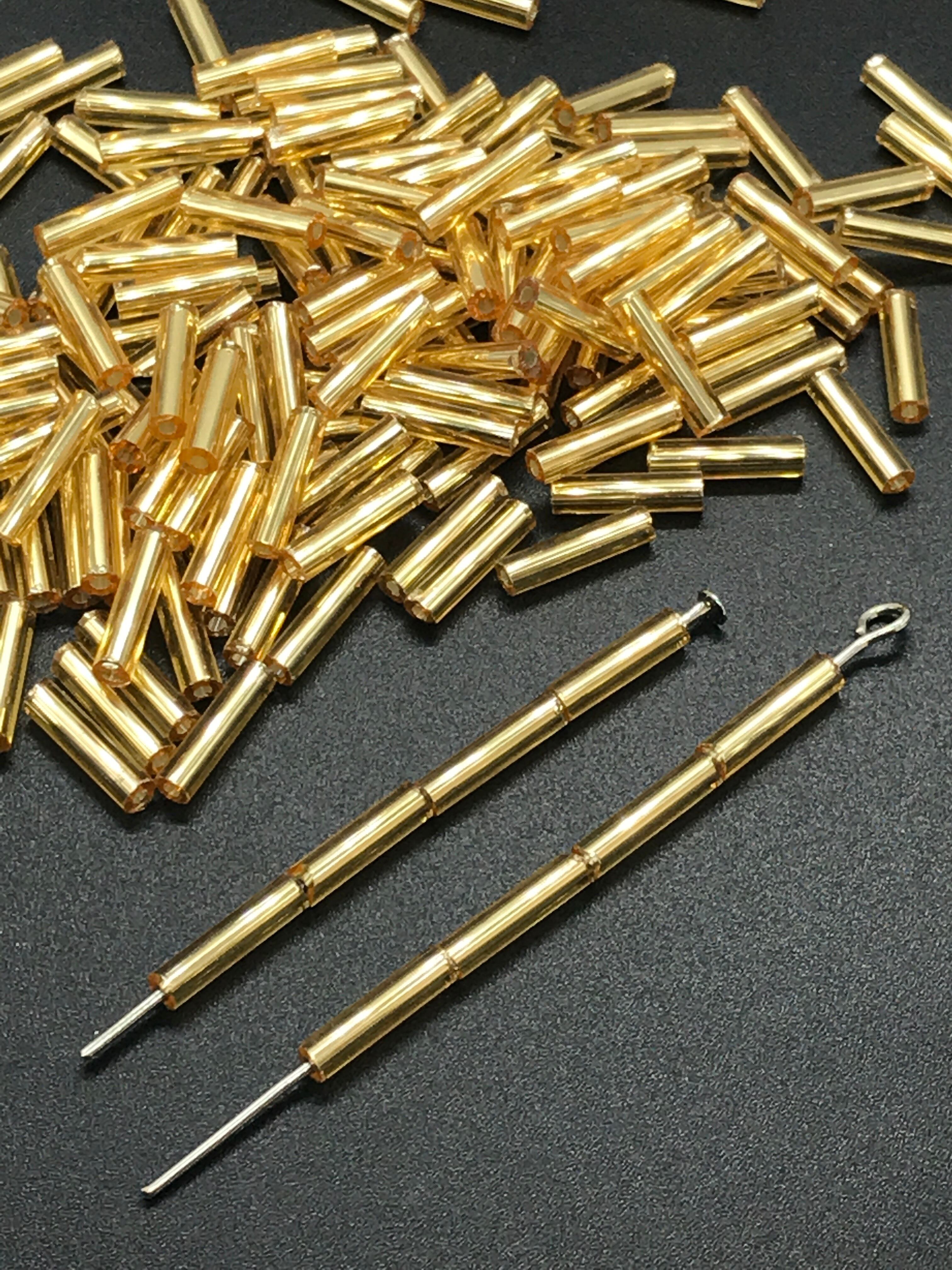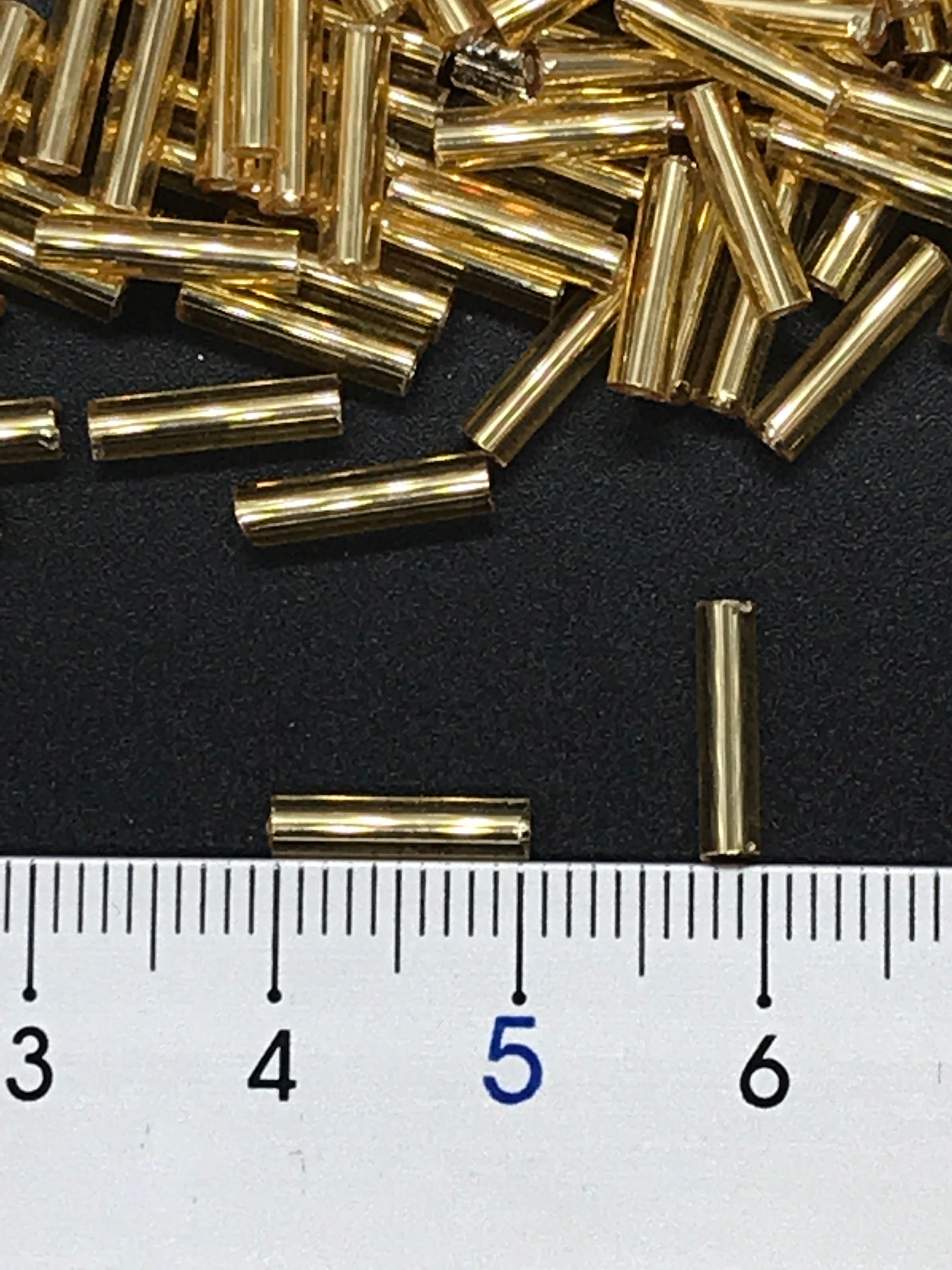 【626】透明のガラスラッパビーズ チューブ★イエローゴールド 10mm/200個