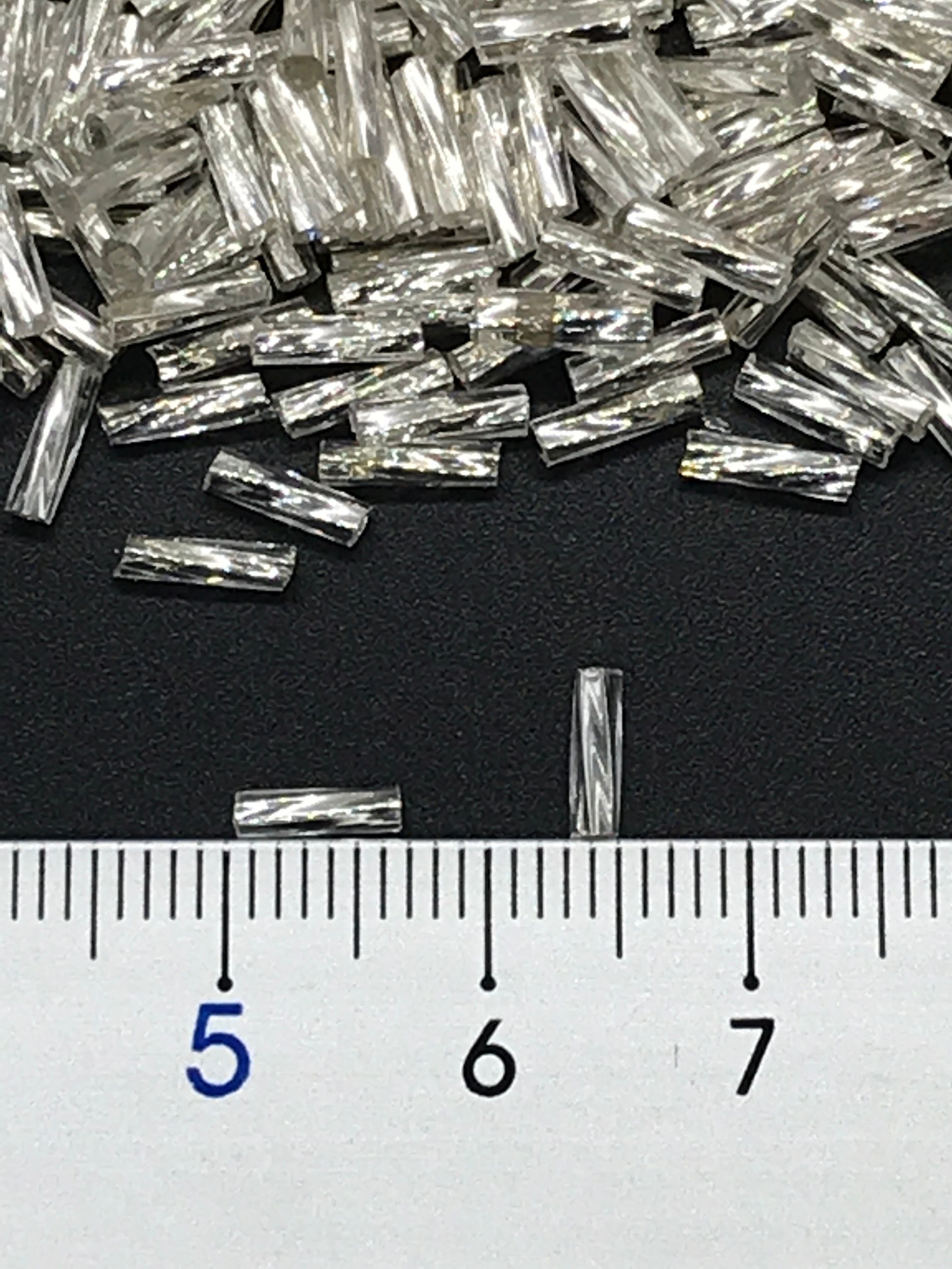 【628】ガラスツイスト ビューグルシードビーズ★シルバー 約6-7mm/300個