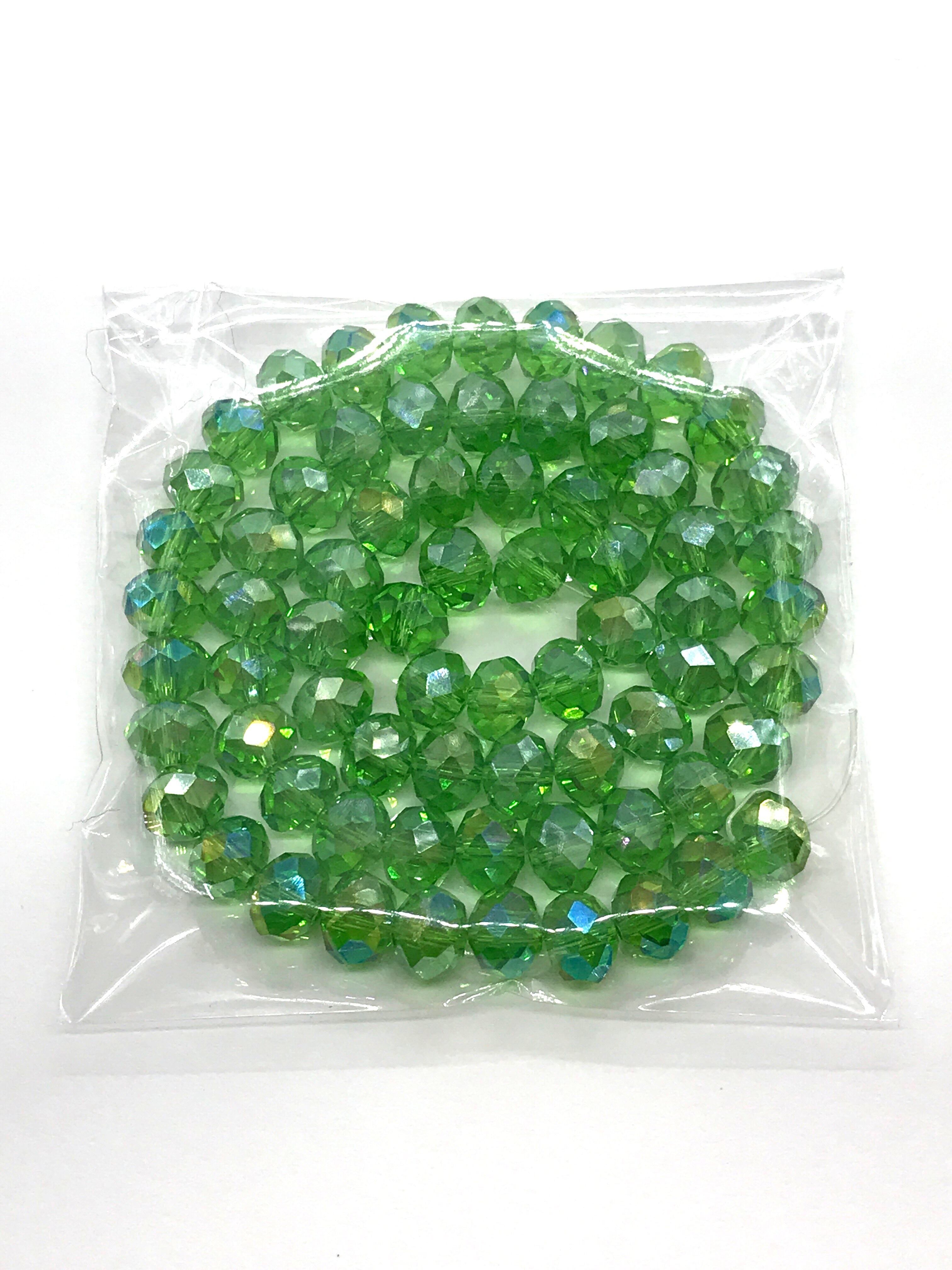 【641】電気メッキガラスビーズストランド ABカラーメッキ★ライムグリーン 8mm/1連