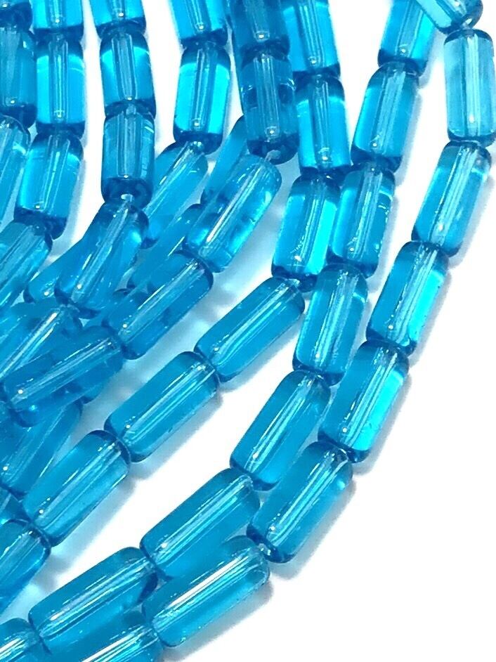 【649】クリアガラスビーズストランド/チューブ★ドジャースブルー 10mm/1連(約32個)