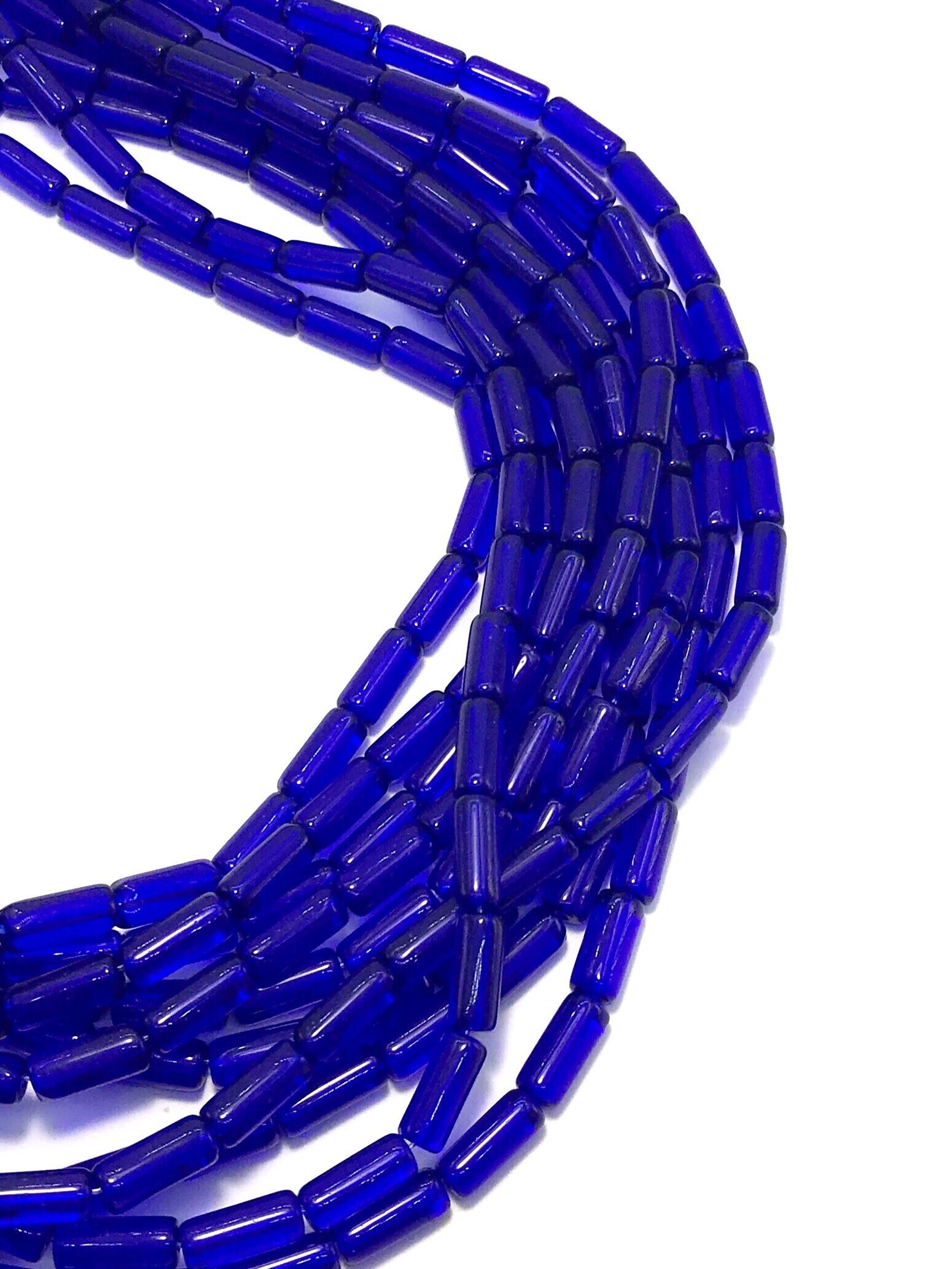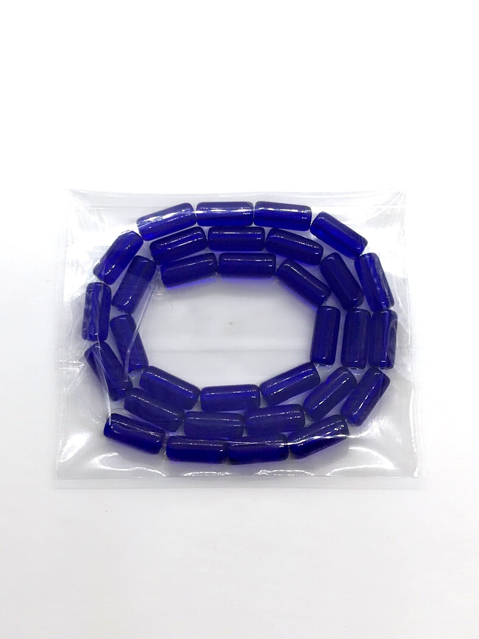 【650】クリアガラスビーズストランド/チューブ★ダークブルー 10mm/1連(約32個)