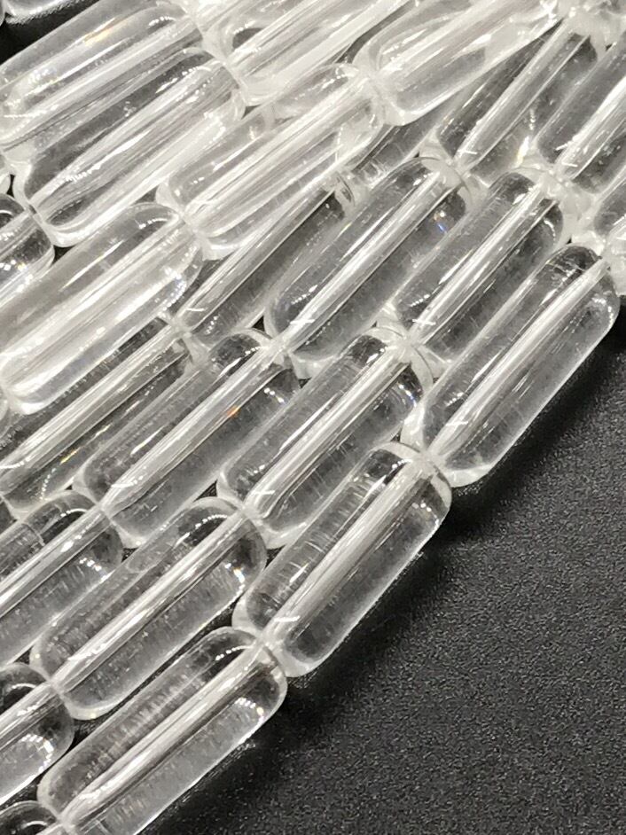 【653】クリアガラスビーズストラップ/チューブ★クリア 15mm/1連(約20個)