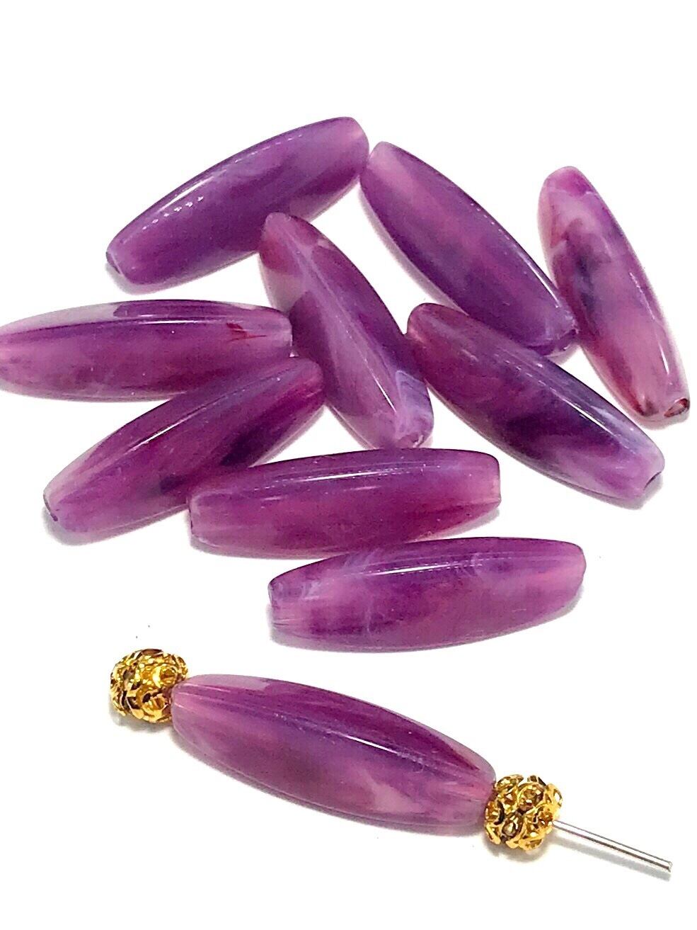 【721】天然石風アクリルビーズ/米型★パープル 10個
