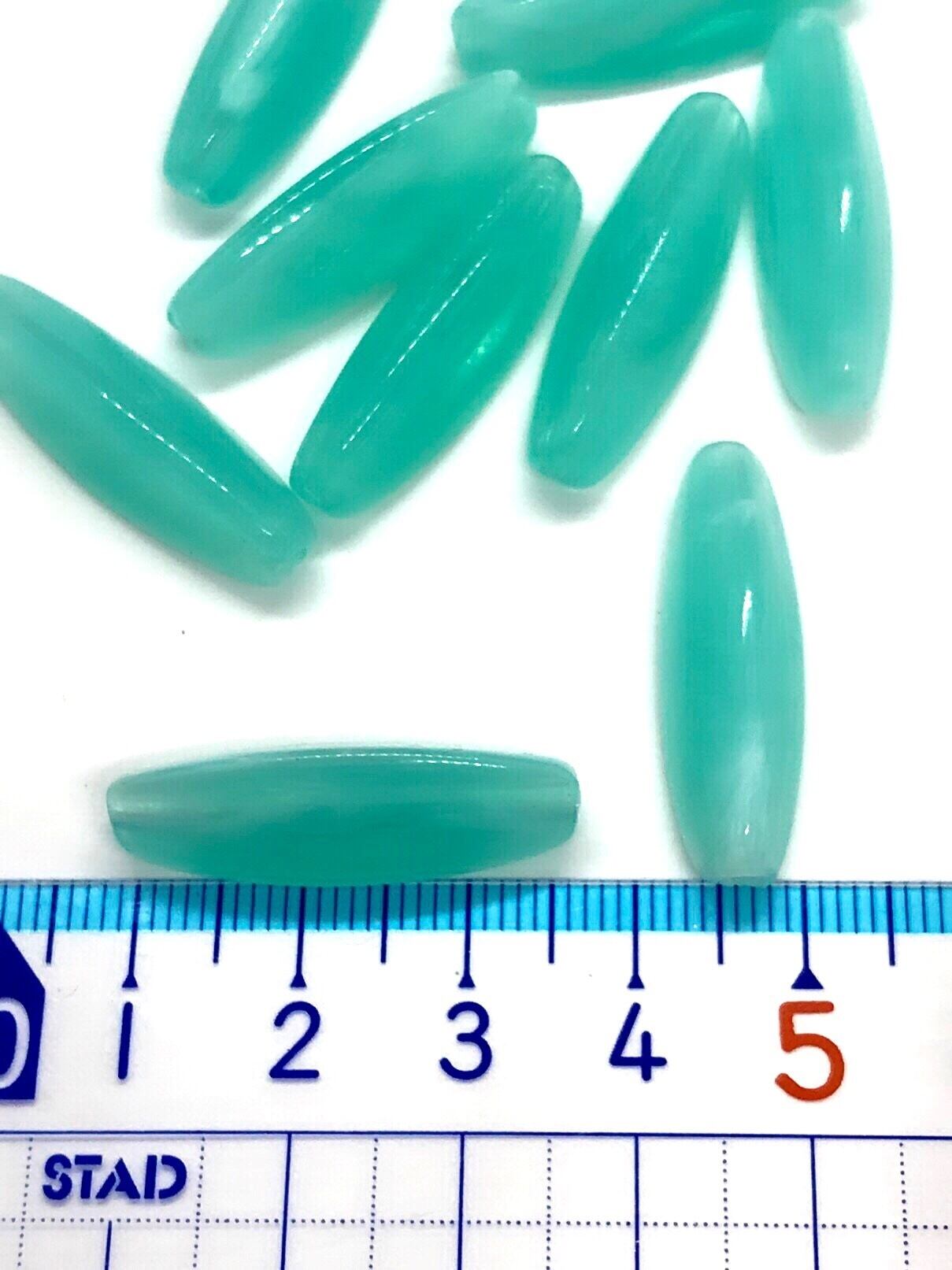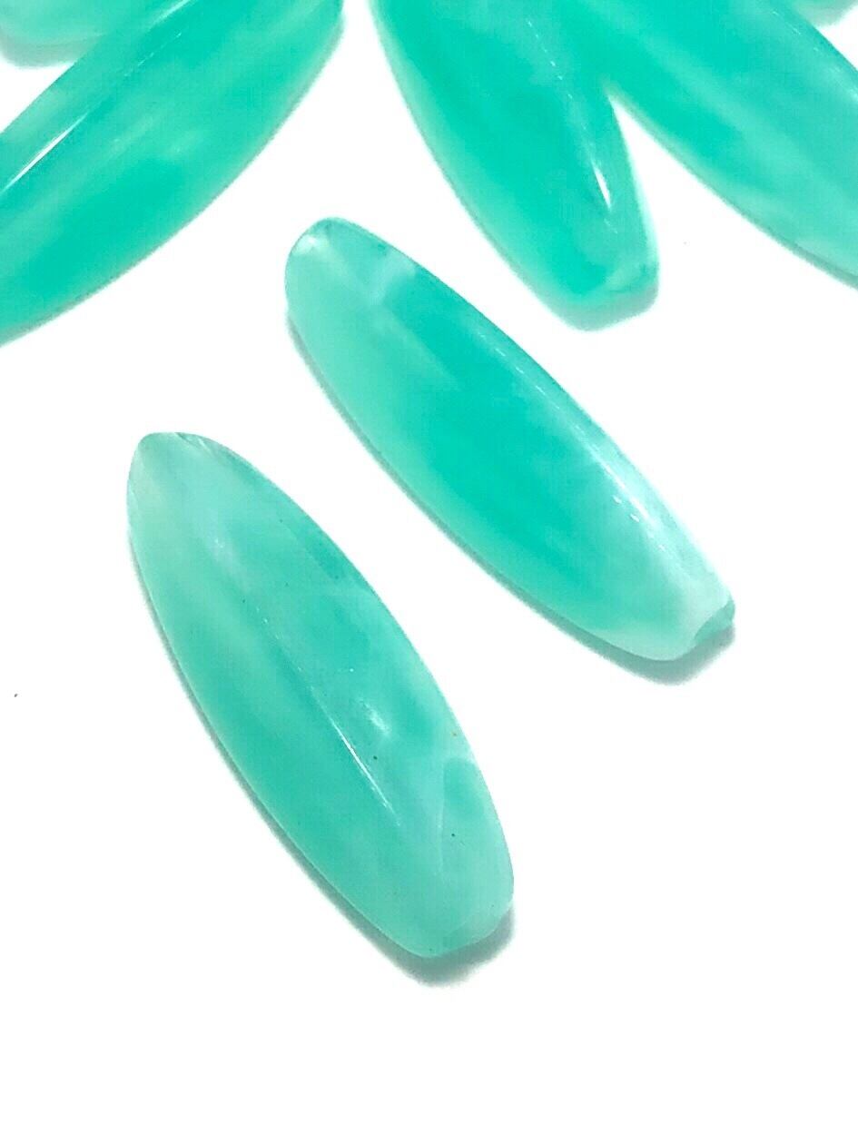 【722】天然石風アクリルビーズ/米型★グラスグリーン 10個