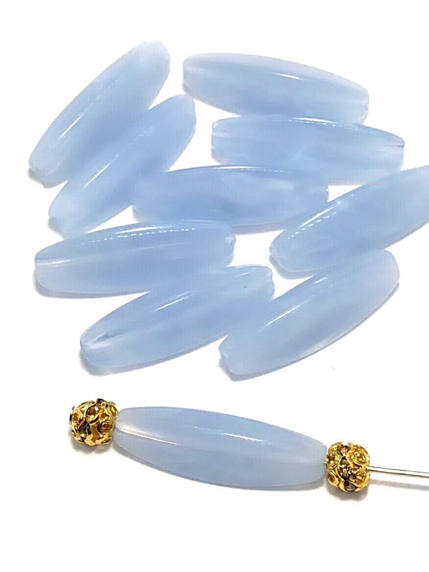 【724】天然石風アクリルビーズ/米型★コーンフラワーブルー 10個