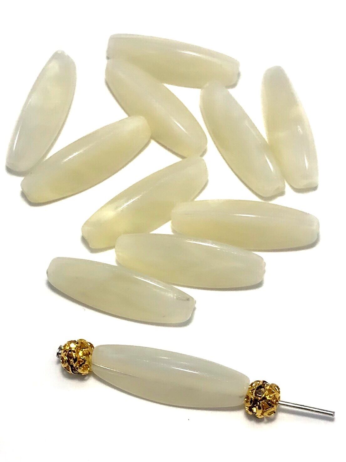 【725】天然石風アクリルビーズ/米型★クリーム 10個
