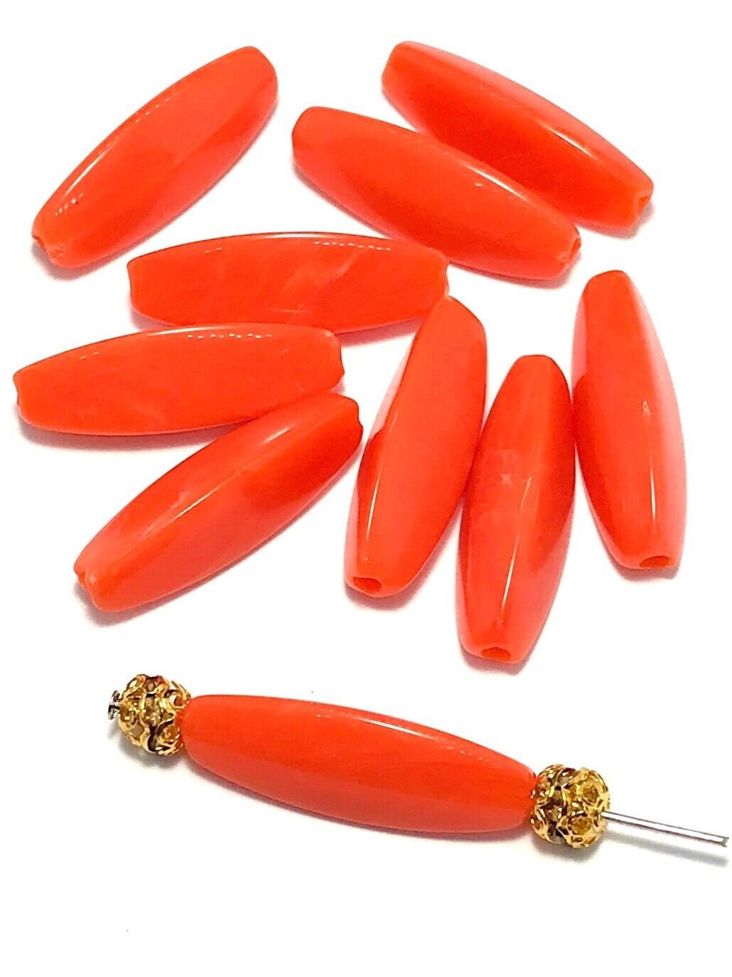 【730】天然石風アクリルビーズ/米型★トマト 10個
