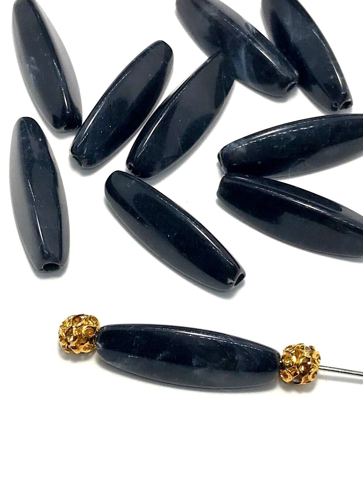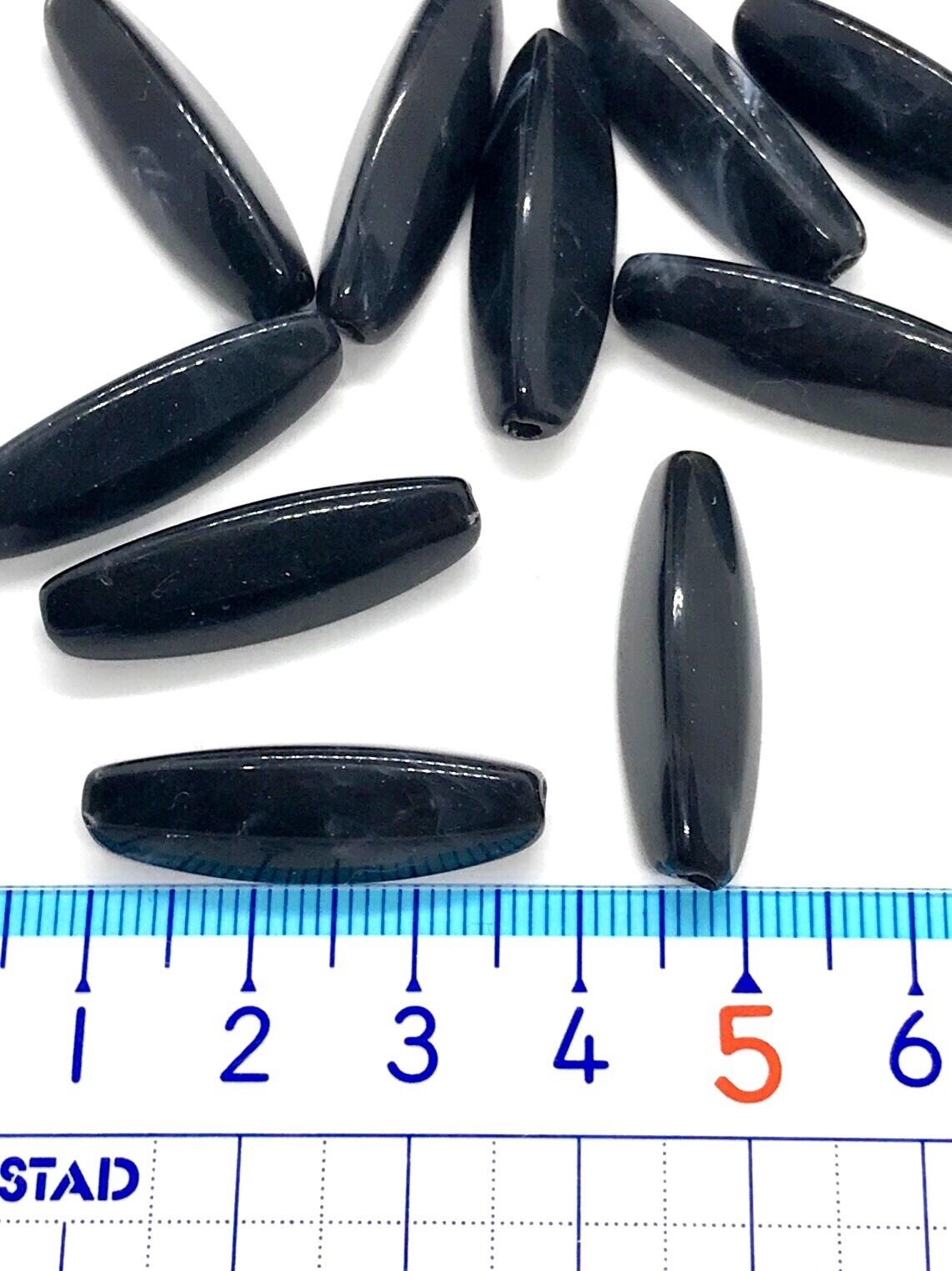 【738】天然石風アクリルビーズ/米型★ブラック 10個