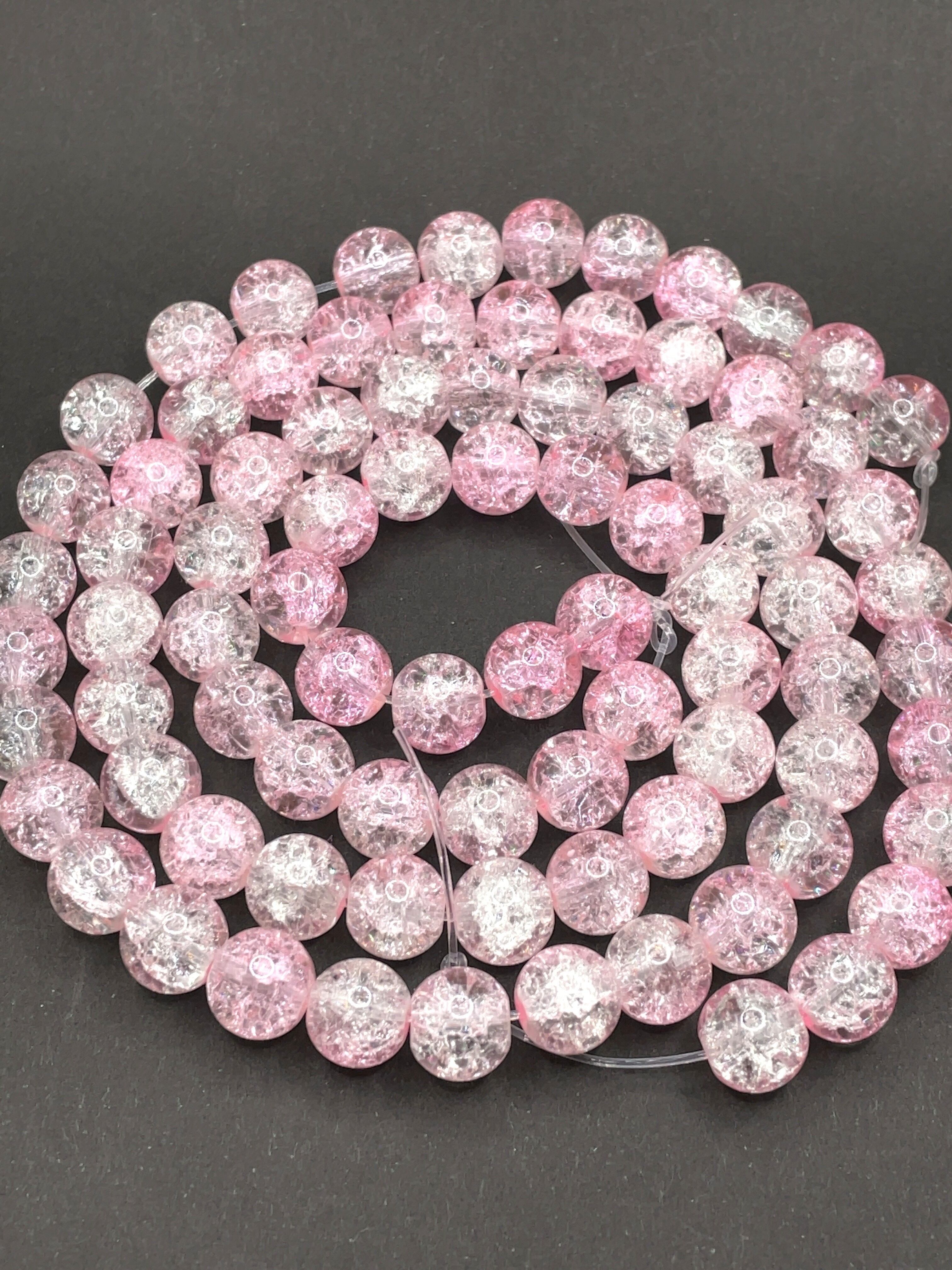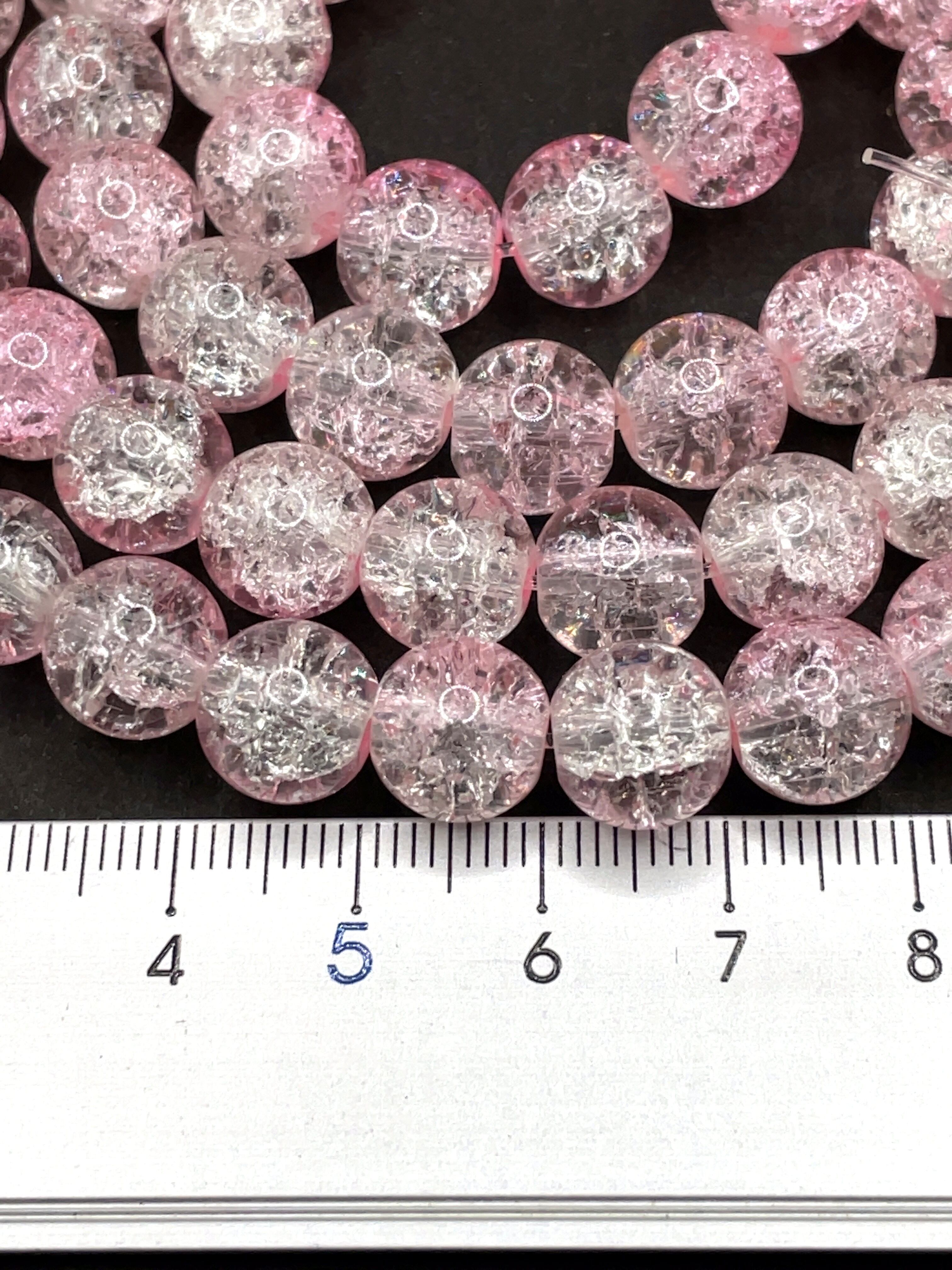 【781】クラック水晶ガラスビーズ ラウンド★ピンク 10mm/2連set
